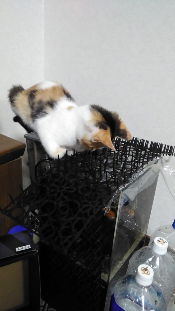 こぶちが水槽をいじるので、猫よけを強化しなきゃ💦