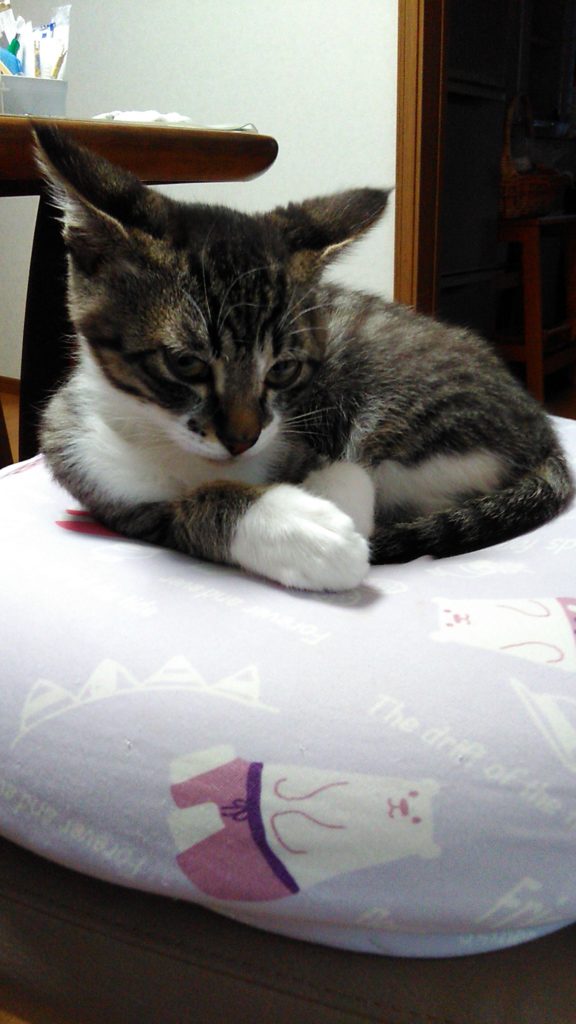 チッチ大きくなってきたので、ドーナツ・クッションから落ちそうです😱💦