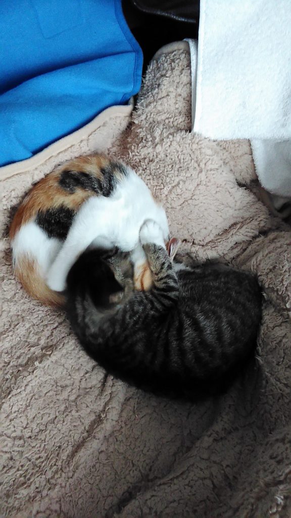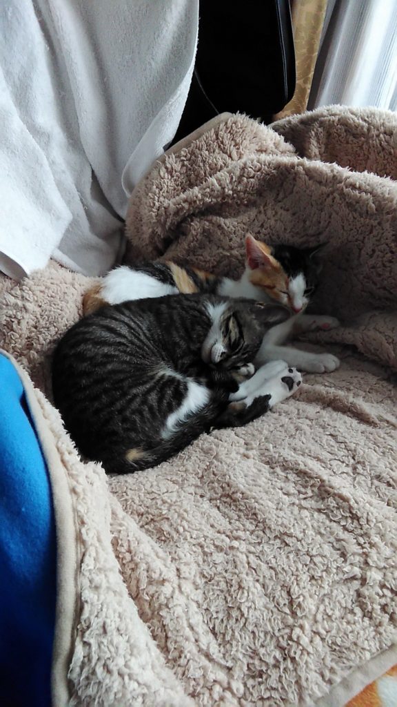 水槽の後ろにコンセントのコードがたくさんあるから猫よけに箱を置いていたのですが、チッチもこぶちも大きくなったのでもう意味がないですね💦