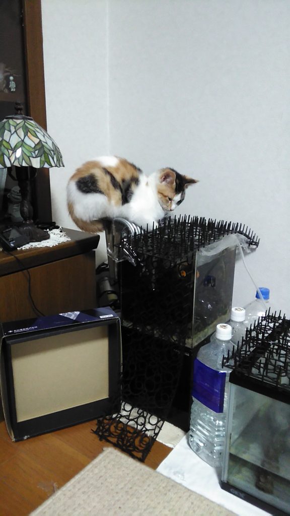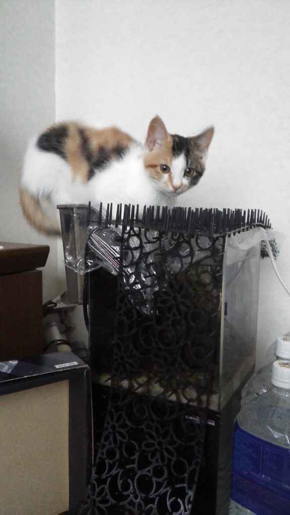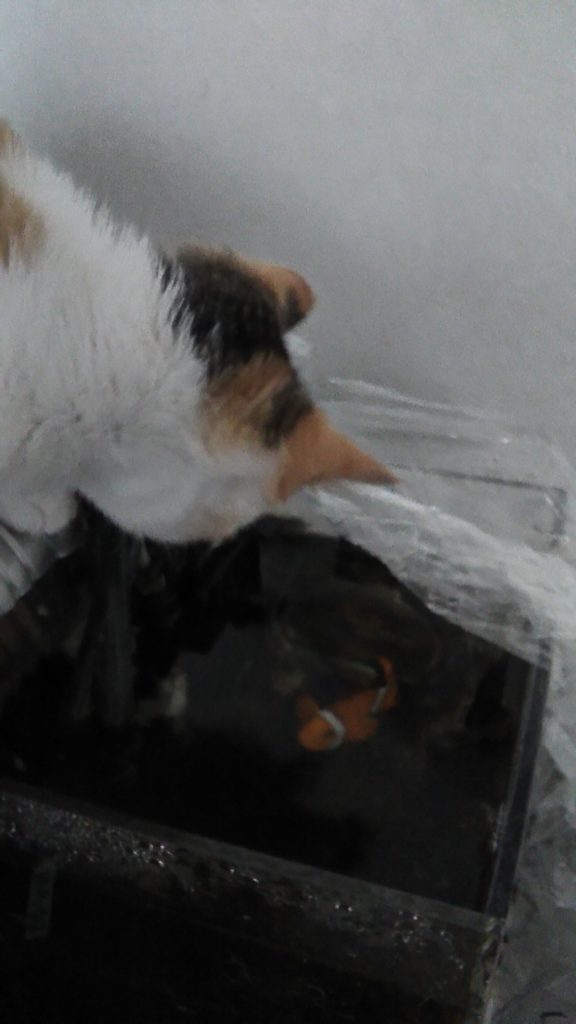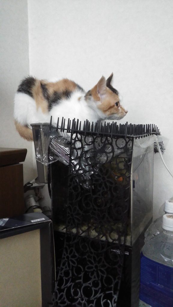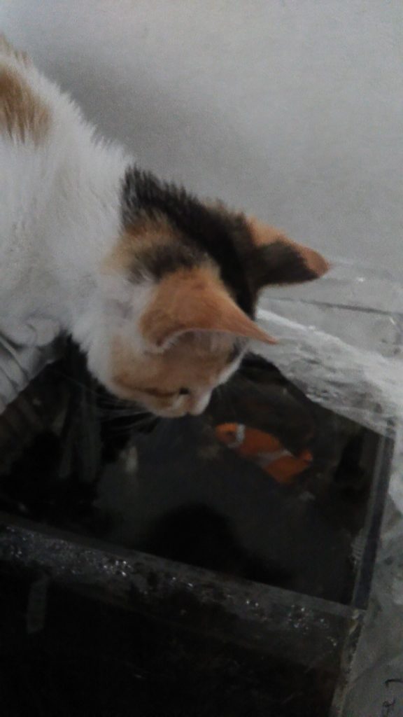 食べ終わり、こぶちは水槽に🐠