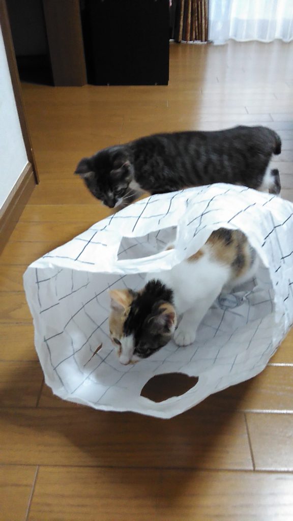 9時40分 また袋で遊び始めましたが、いつもより元気ないです😢