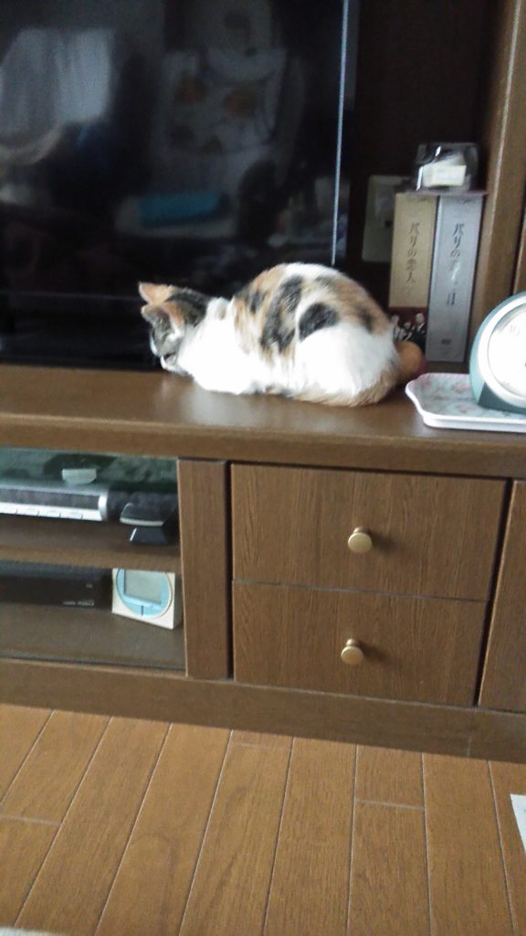 14時20分 しばらく寝てましたが、テレビ台へ📺