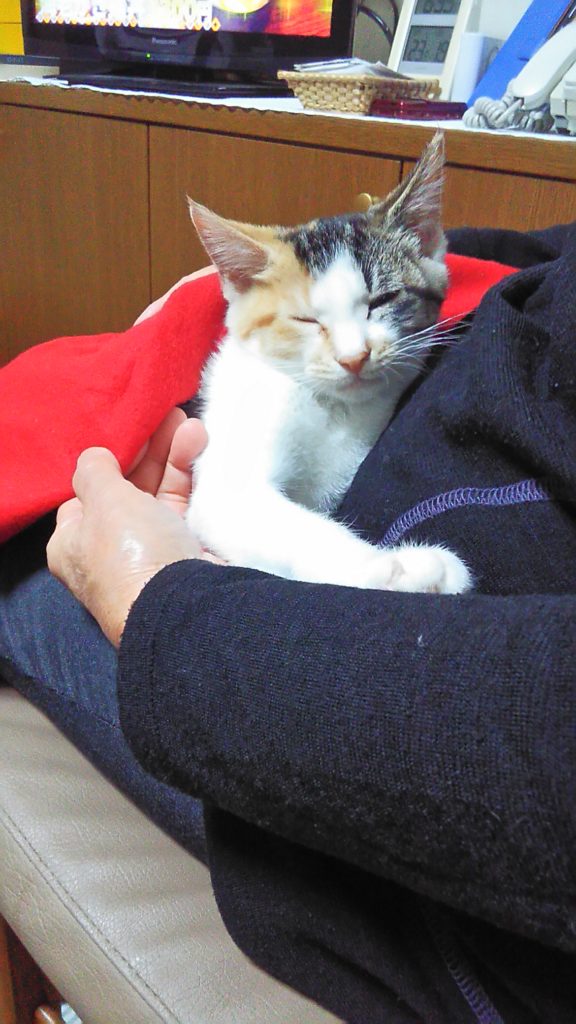 この後は、ずっとべったりなチッチは私がブログを書いている間も膝の上で寝ていました💤