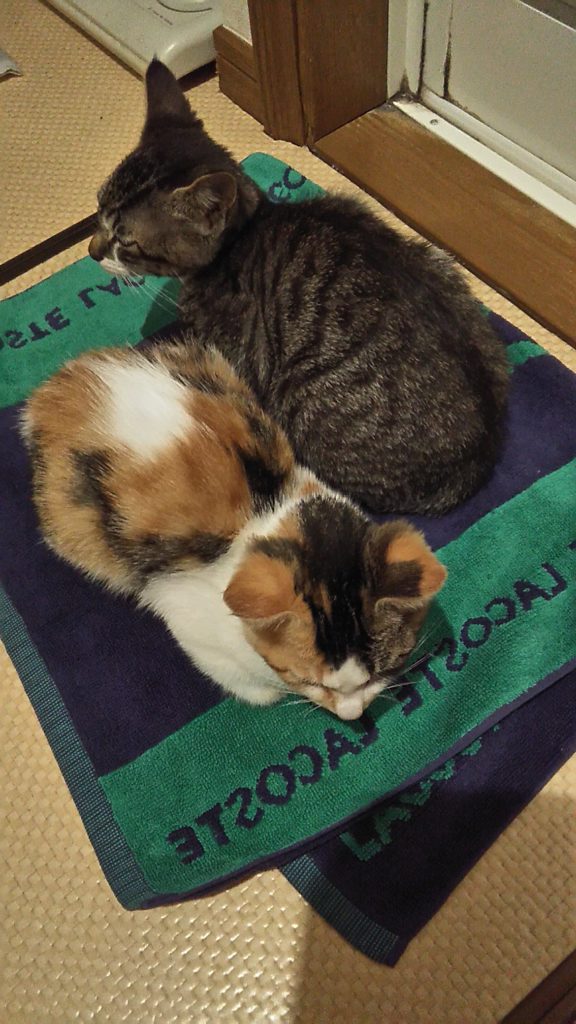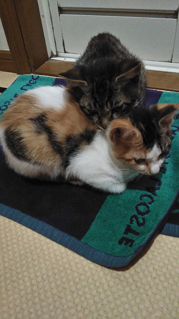 21日にブロードラインという寄生虫駆除の薬をつけた副作用なのか、かわいそうにゲーを繰り返しているチッチとこぶちです