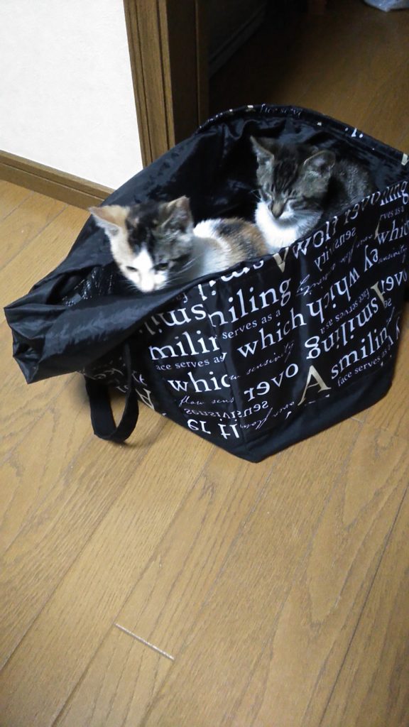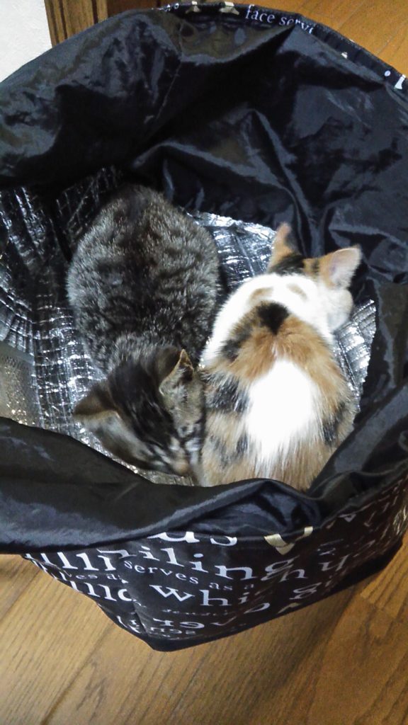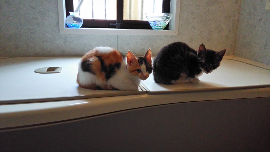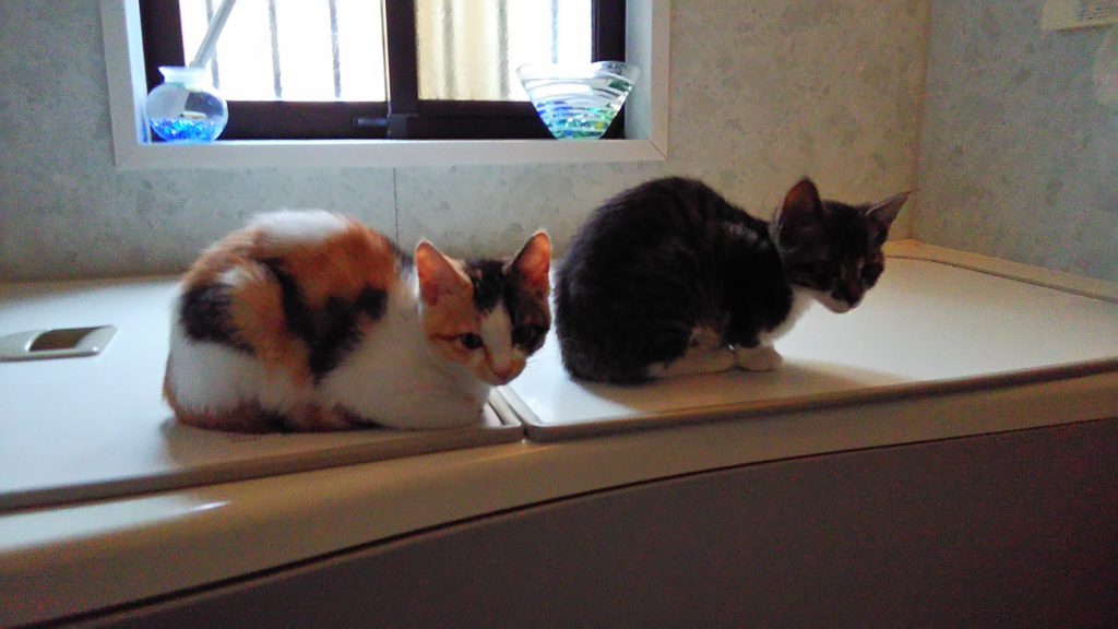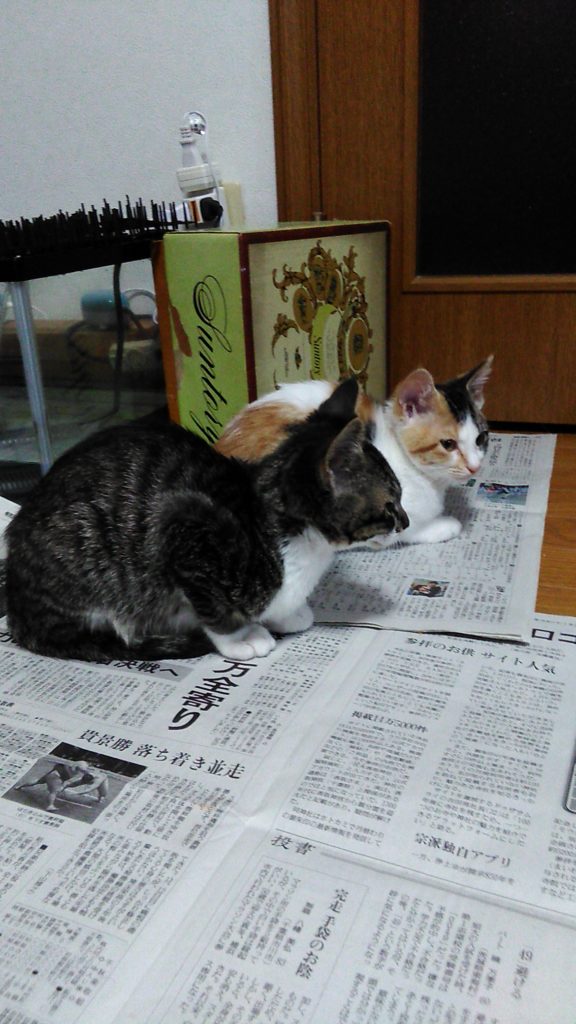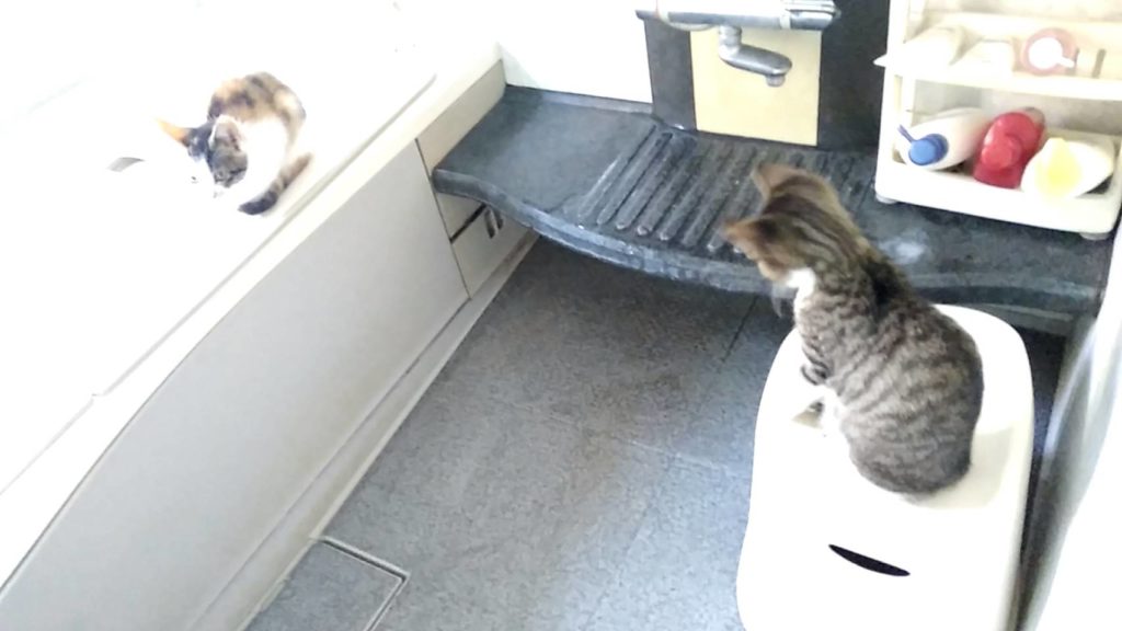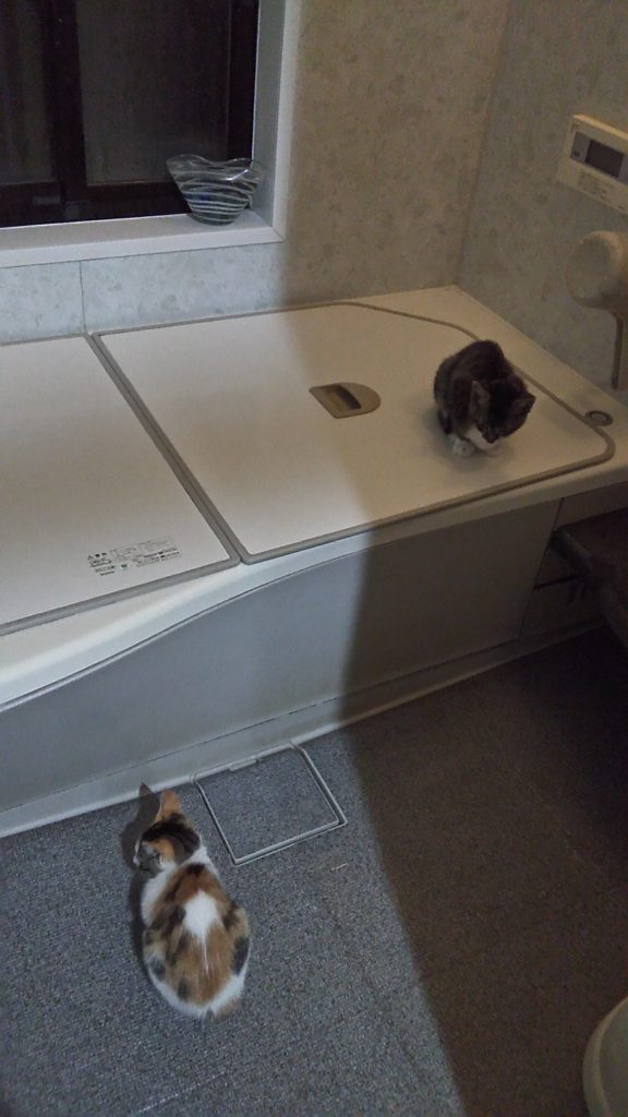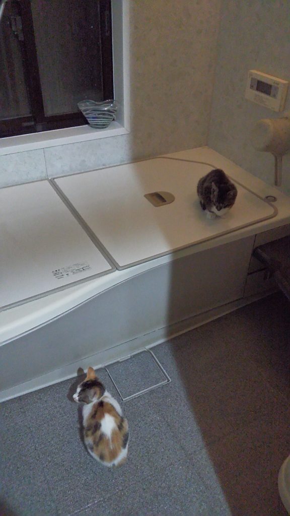 18時50分 チッチ、こぶち、お風呂場で水飲みました