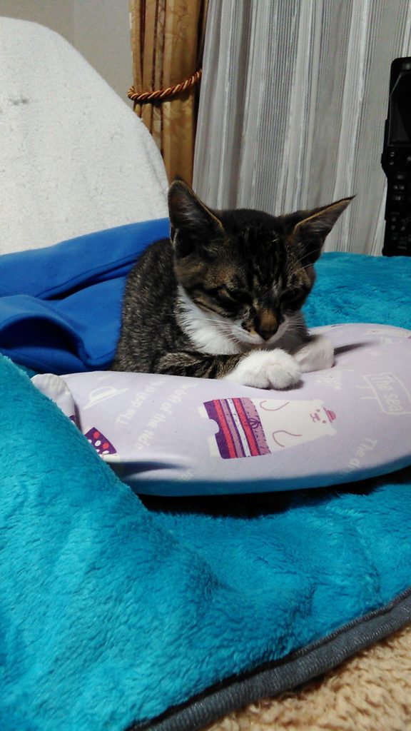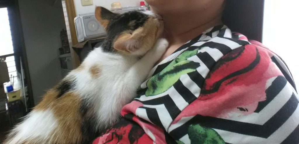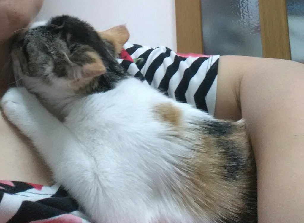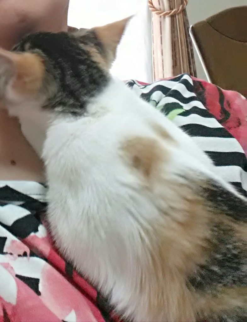 21時55分 こぶちは椅子で抱っこはいいみたいだけど、横になっての抱っこは嫌がりすぐに出ていってしまいます😢