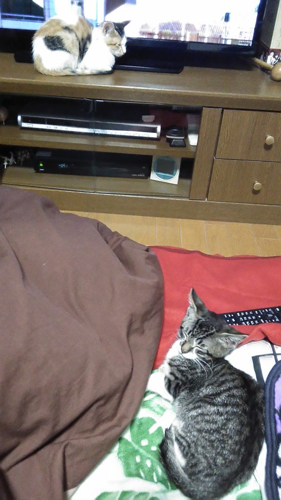 20時25分 いつもは一緒にいるとすぐじゃれあったり、ケンカしたりドタバタですが、おとなしくジッとしているので具合い悪いんだと思います😢