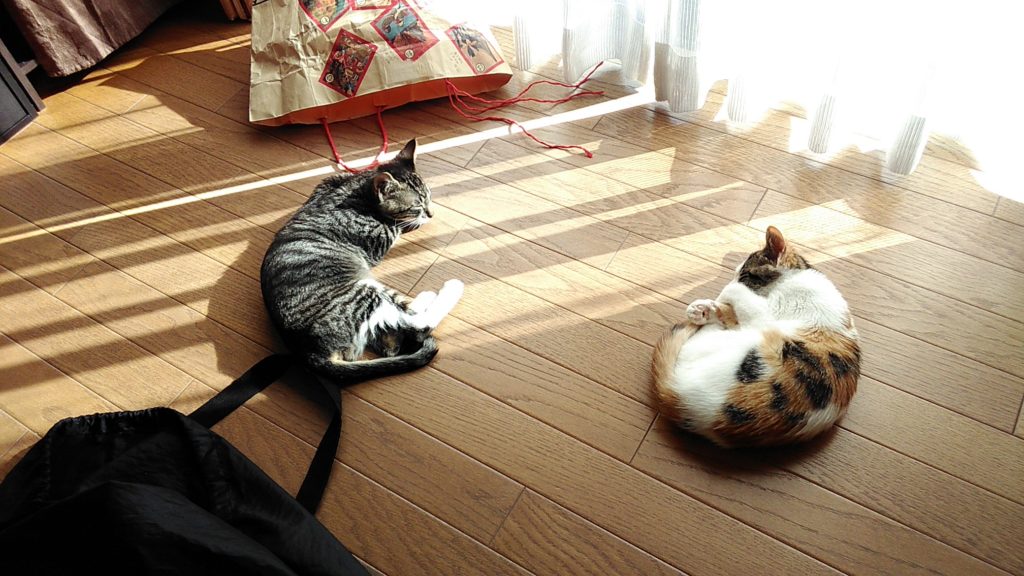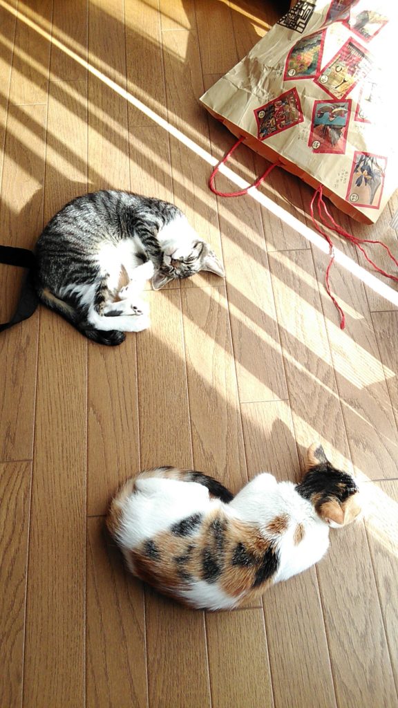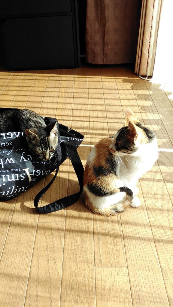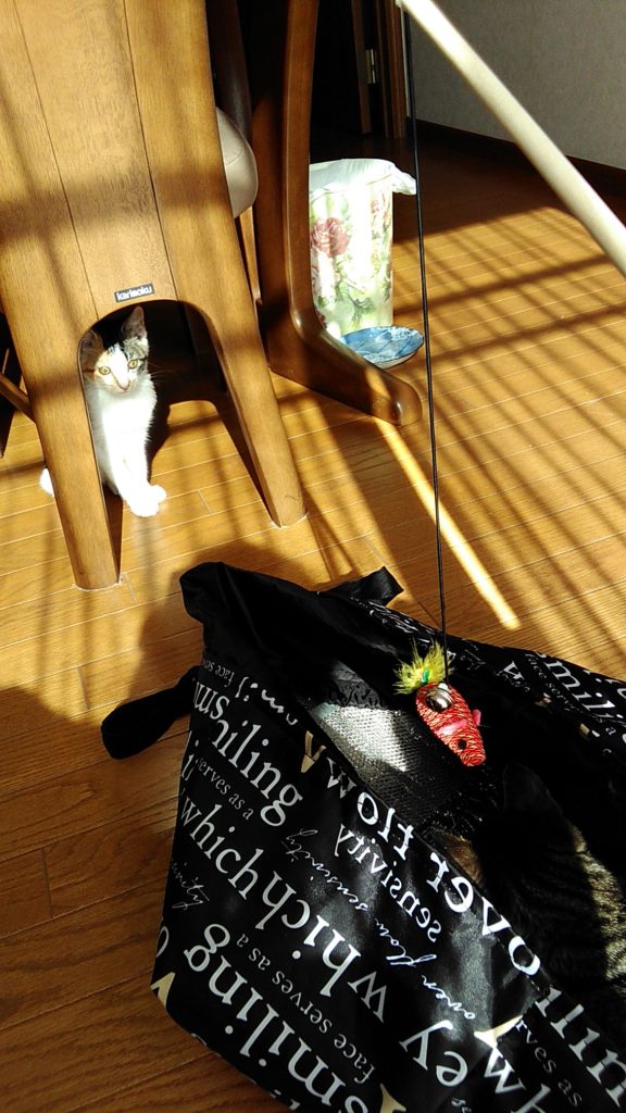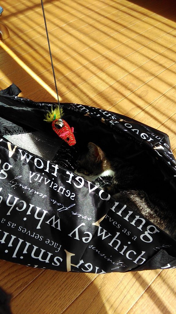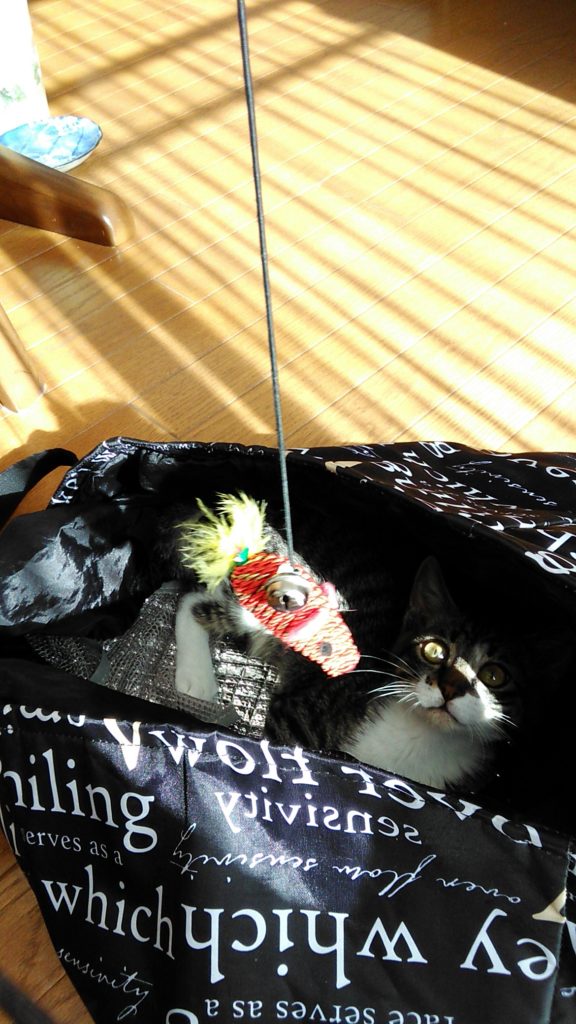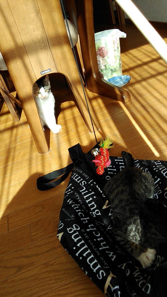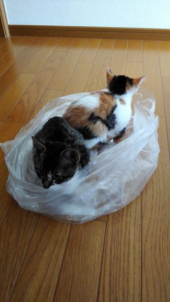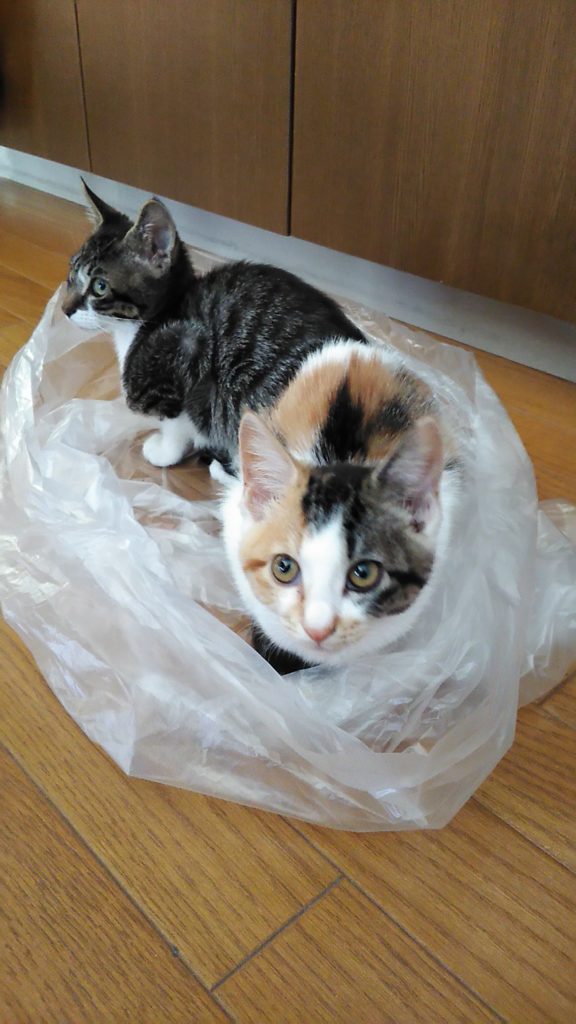 8時6分 チッチとこぶちはビニール袋に入って遊んでます🎵