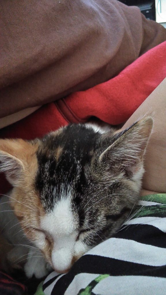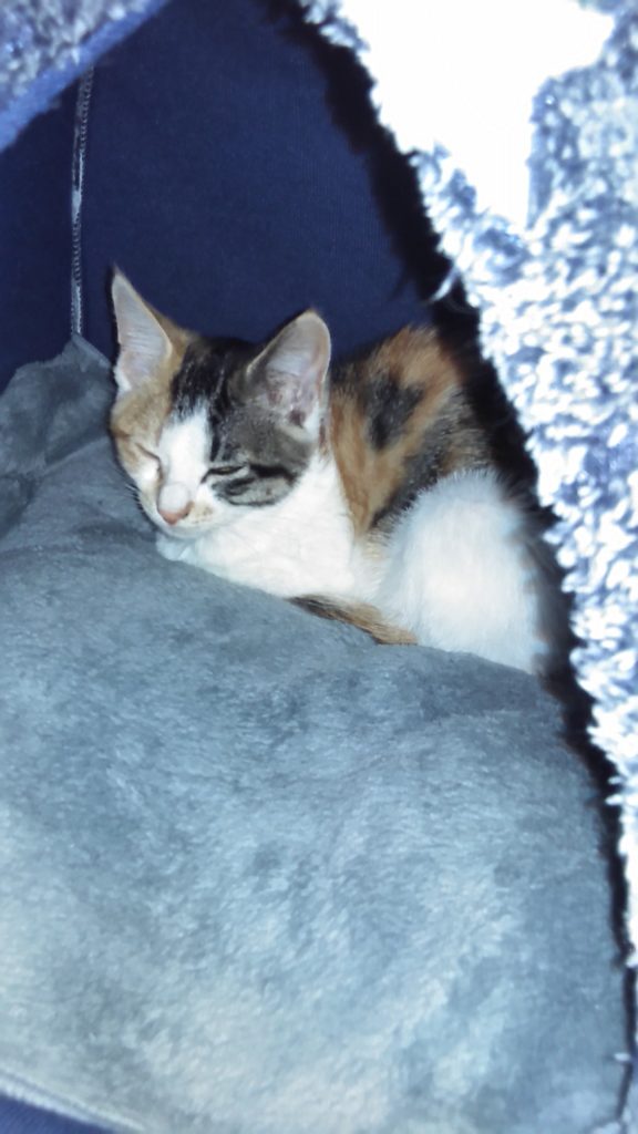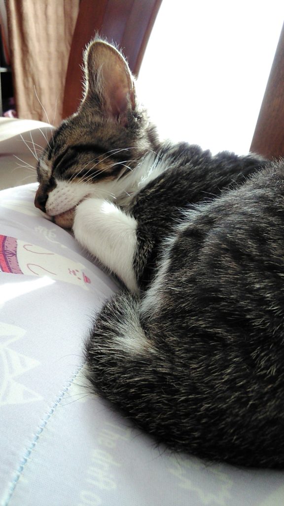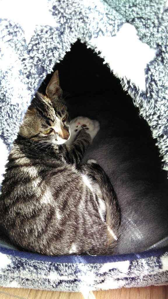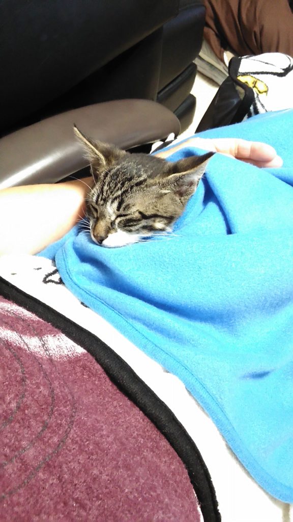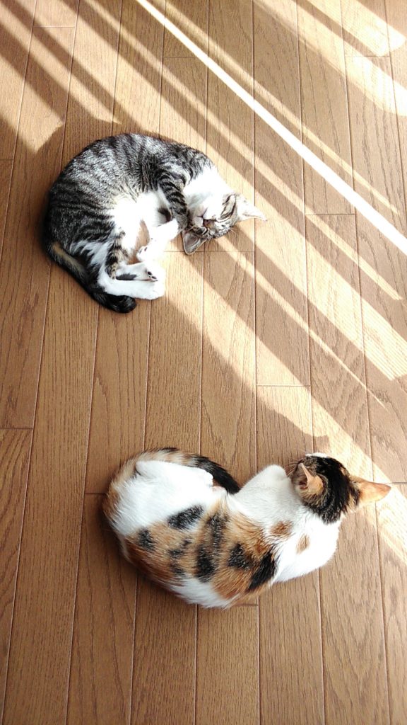 9時10分 こぶち、お水のお皿の所で寝てしまいました💤