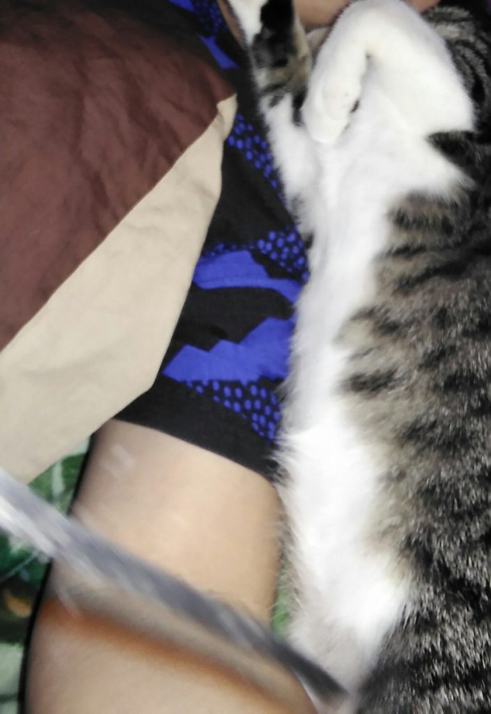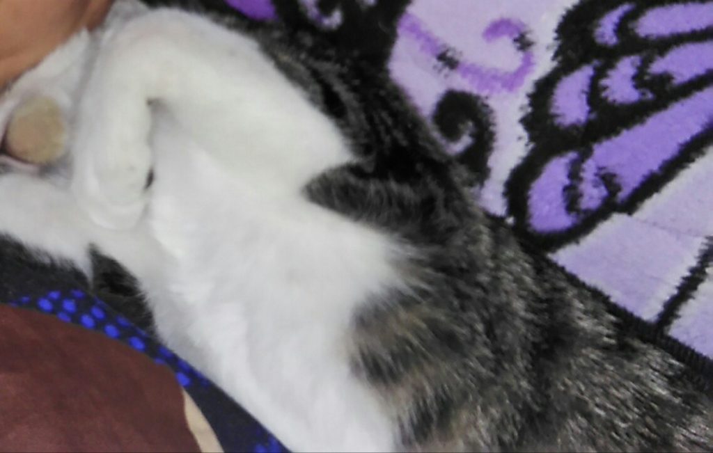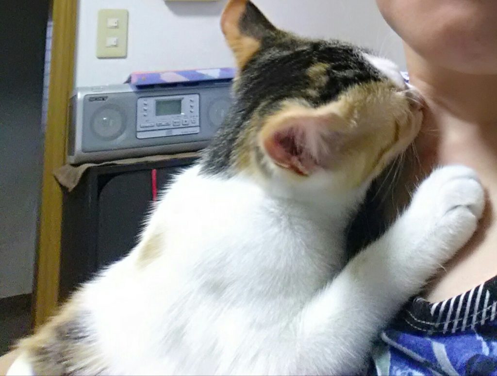 マッサージチェアの上で寝ていたチッチとこぶちでしたが、気づいたらチッチが顔の横で嬉しそうにゴロゴロ喉を鳴らしてべったりひっついて寝てました💤