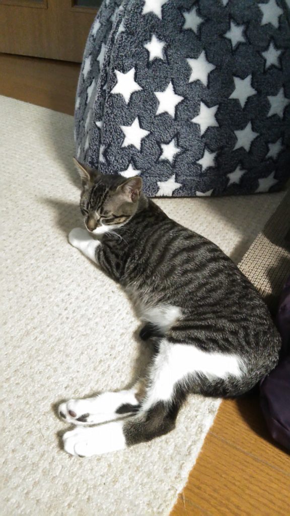 こぶちは手足が長すぎて猫っぽくないですね😅