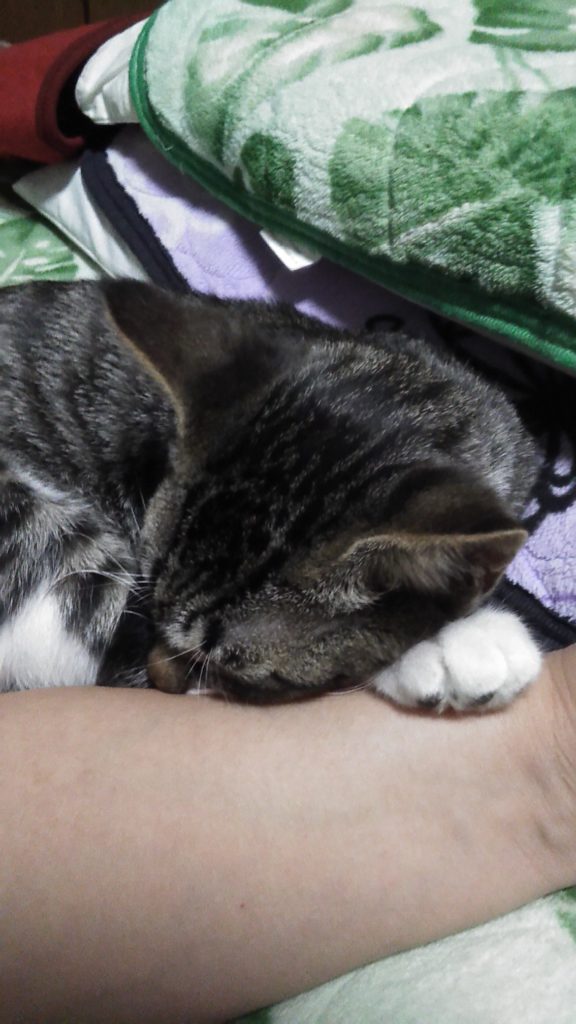 私の腕を枕にして寝ました💤