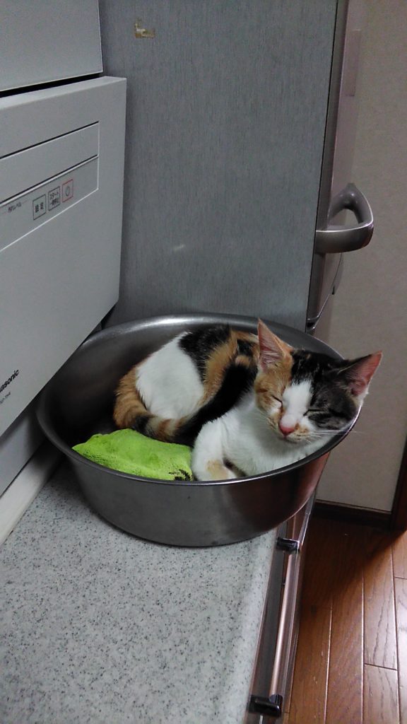 また洗面器に入って寝ちゃいました💤