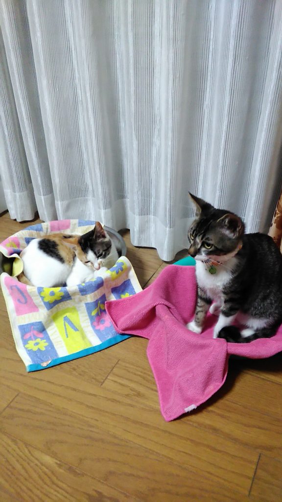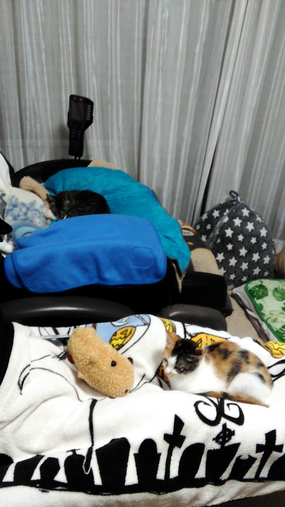帰宅した時、それぞれの場所でくつろいでいたにゃんず♪