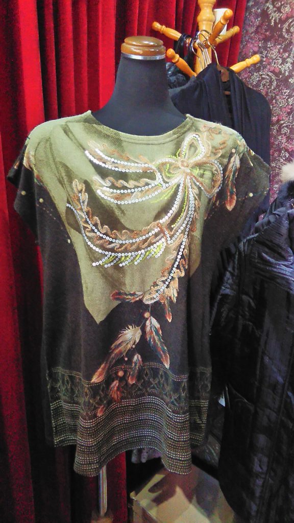 新品のカーキ×刺繍フェザー・チュニック、ターコイズブルー×ドット・チュニックをお買い上げくださいました♪