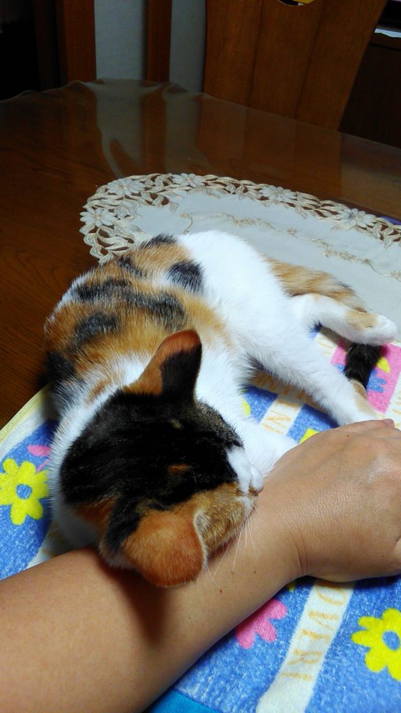 こぶちは、私の腕を枕に寝ちゃいました💤