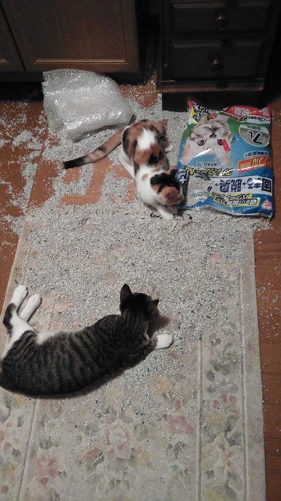 にゃんずはパパに怒られ、片づけてくれました😊
