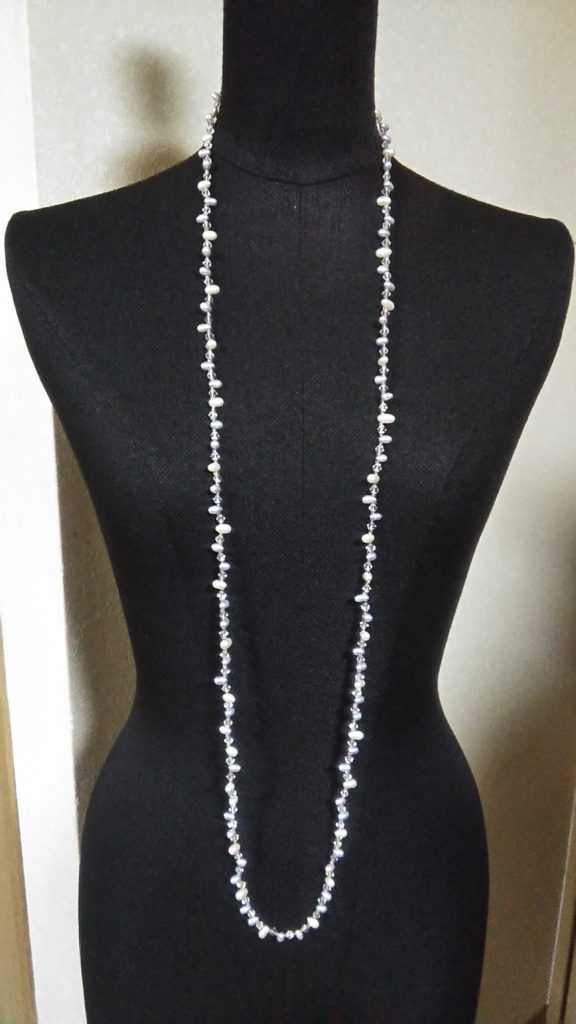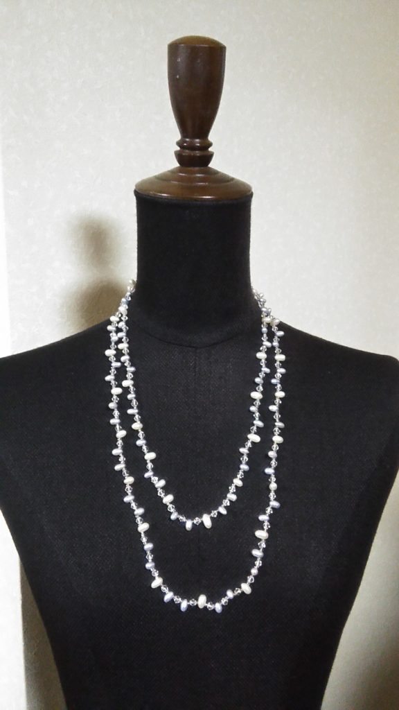 ホワイト×ライトブルー淡水パール・ロングネックレス、シルバー・ネックレス、シルバー・Yタイプネックレス、ブラック×ブラウンビーズ・ネックレス、2連ブレスレットをお買い上げくださいました🎵