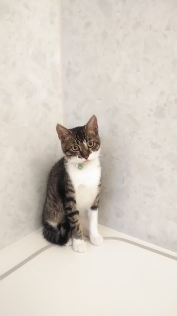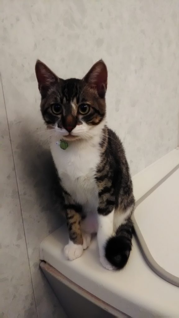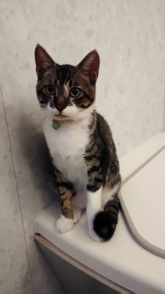 いつもはこぶちの方が先に玄関に『おかえり』してくれるのに、チッチが先にお出迎えしてくれました😺