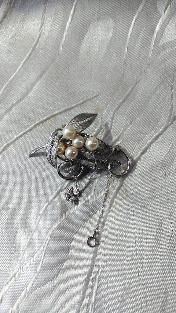 ネックレスとブローチの絡まりとバッグの持ち手が取れてしまったので、お直しさせて頂きました👍