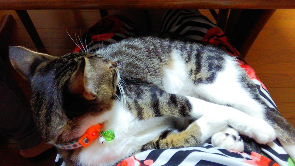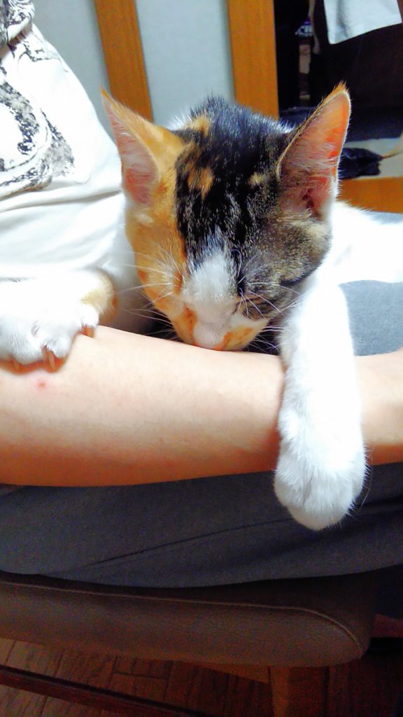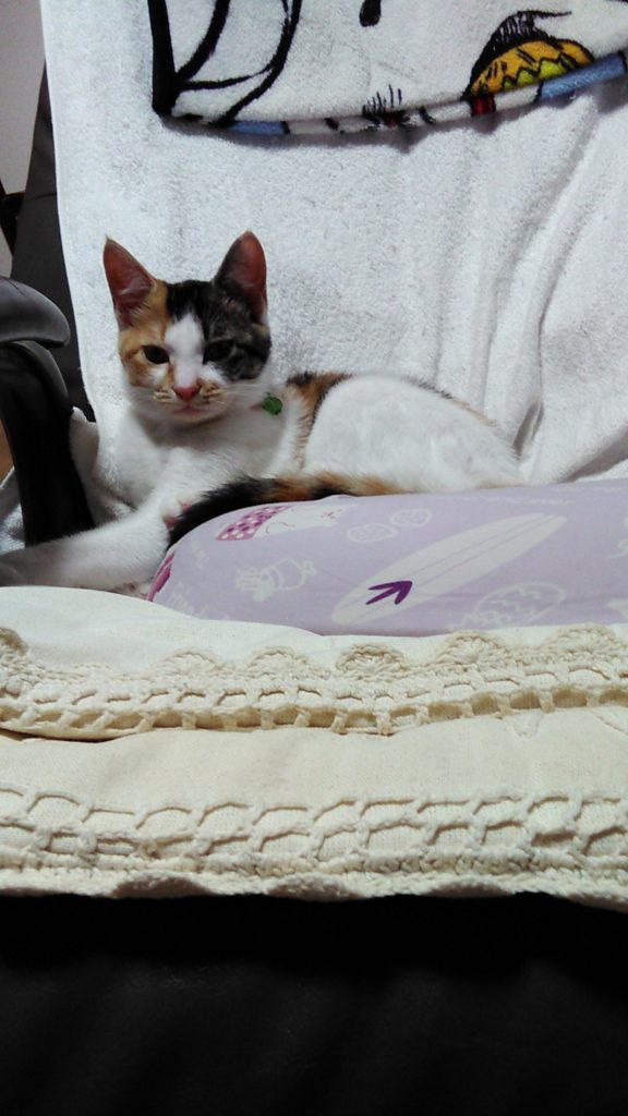 こぶちはそんなチッチをマッサージチェアの上から眺めています💕