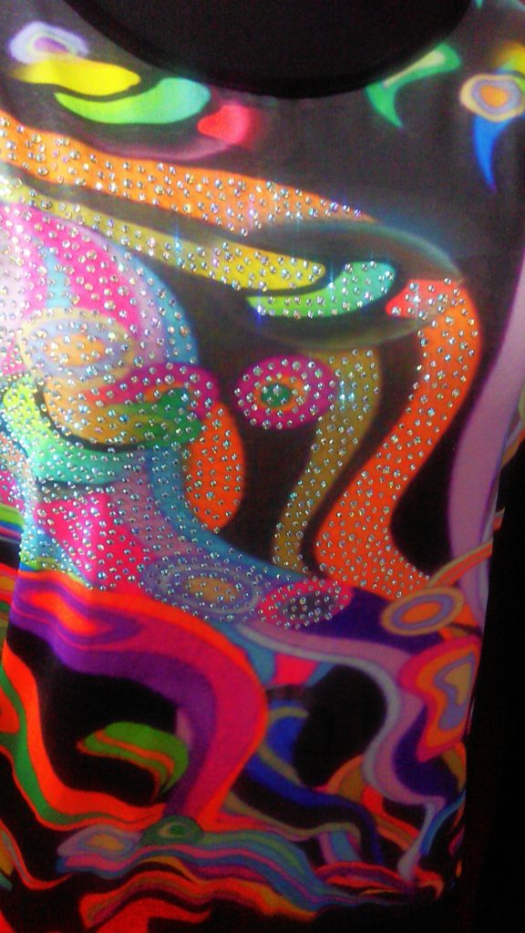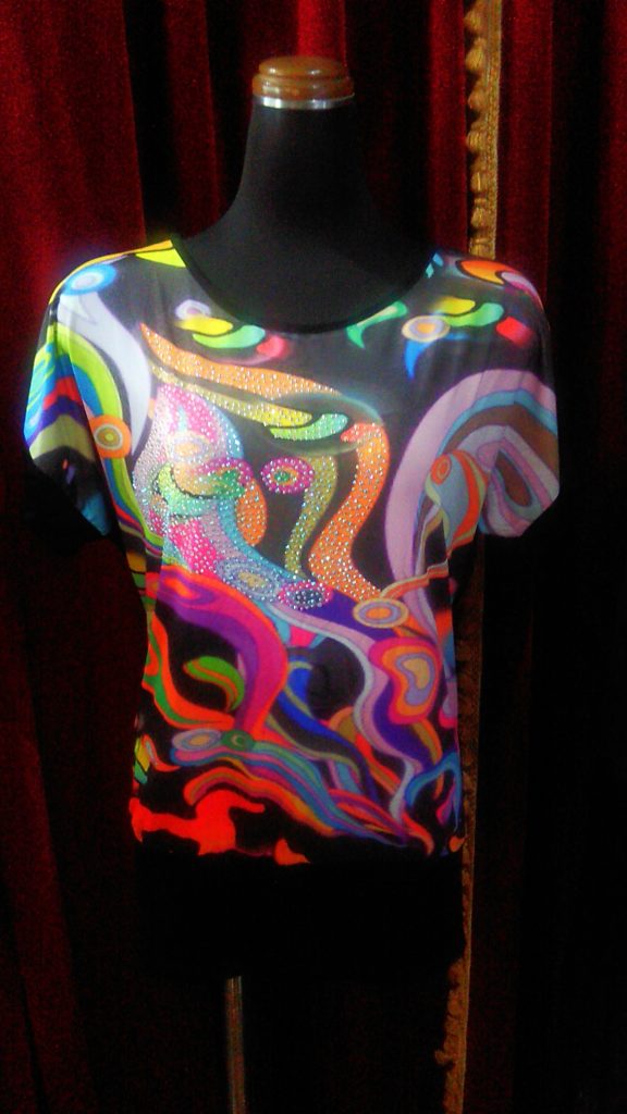 ブラック×カラフル×ビジュー・チュニック、MEN’Sのピンク・Tシャツ、ターコイズブルー・パンツ