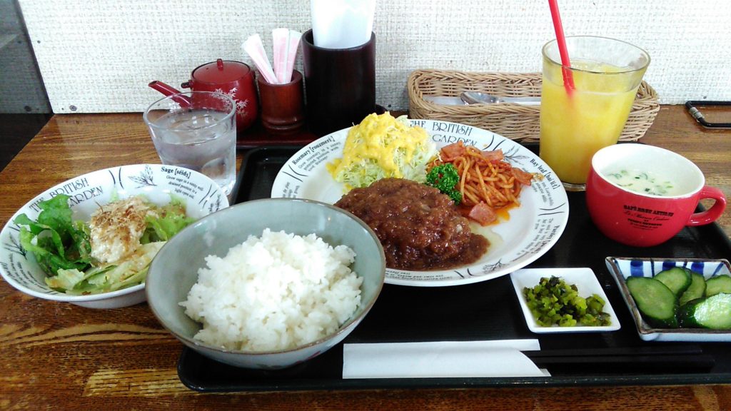 ハンバーグはオニオンの和風タレで美味しかったです😊