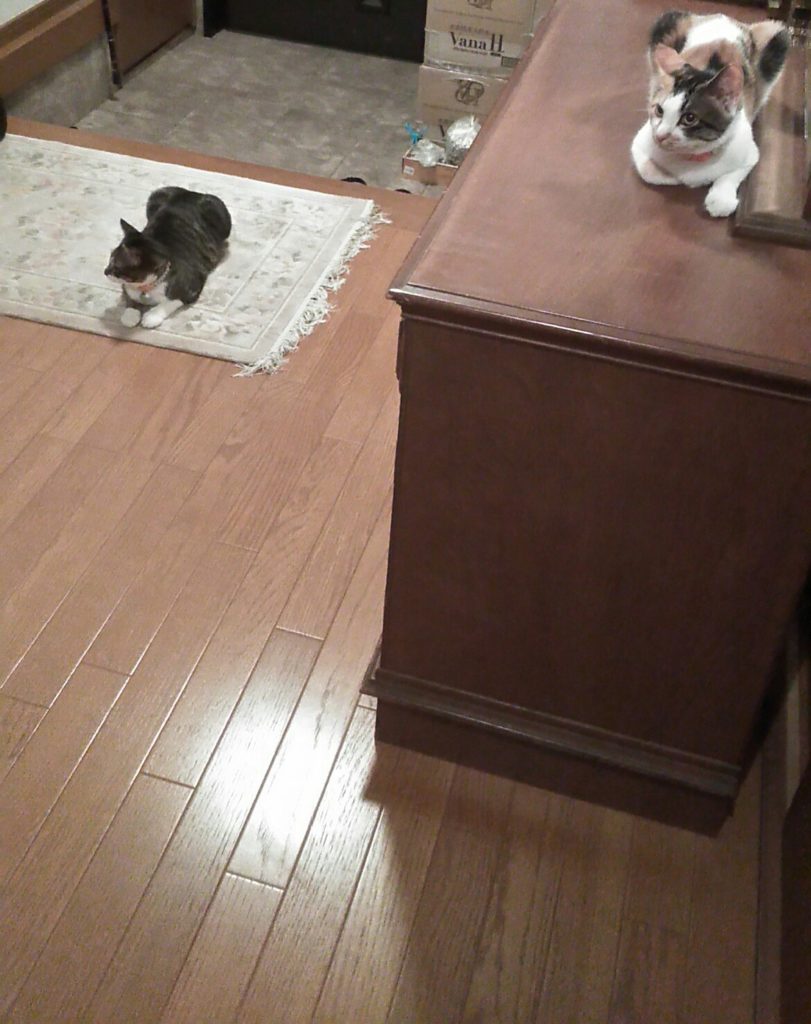 にゃんずがおとなしくしている間に仏間の片付けのつづきをしていて、出たら2匹が待っていてくれました😺😺