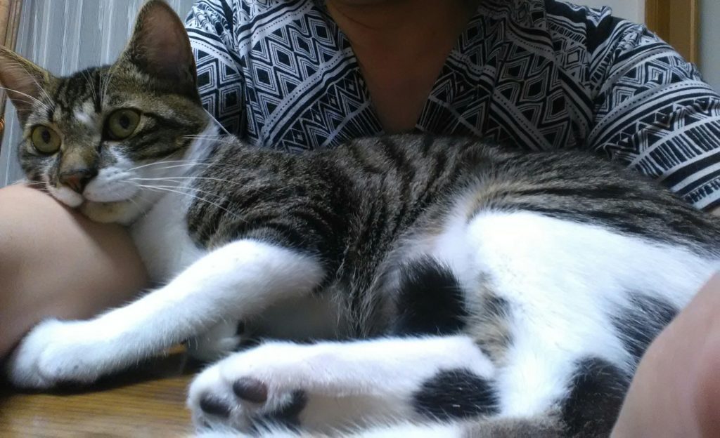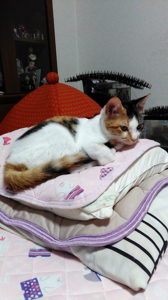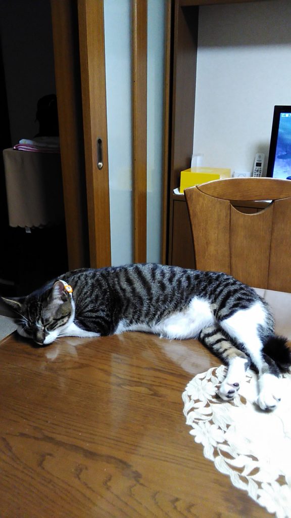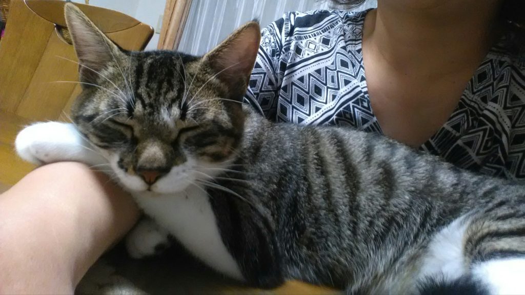 チッチはテーブルの上にいましたが、私がブログを書いていたら腕の中に入ってきました😊
