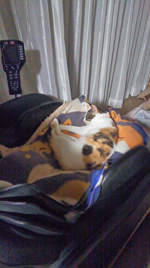 こぶちはマッサージチェアで寝ました💤