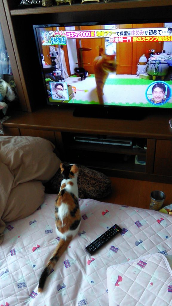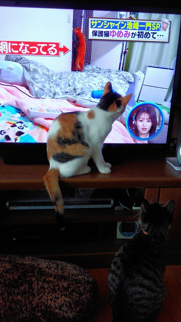 にゃんずは、猫が出ているテレビをじーっと見ています📺