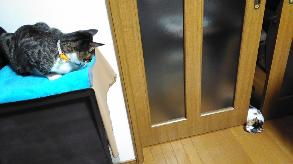 ふと見たら、こぶちがドアの隙間にいました😺💦