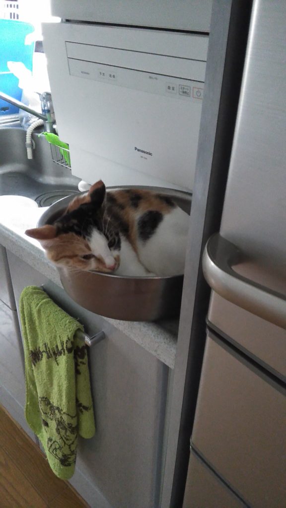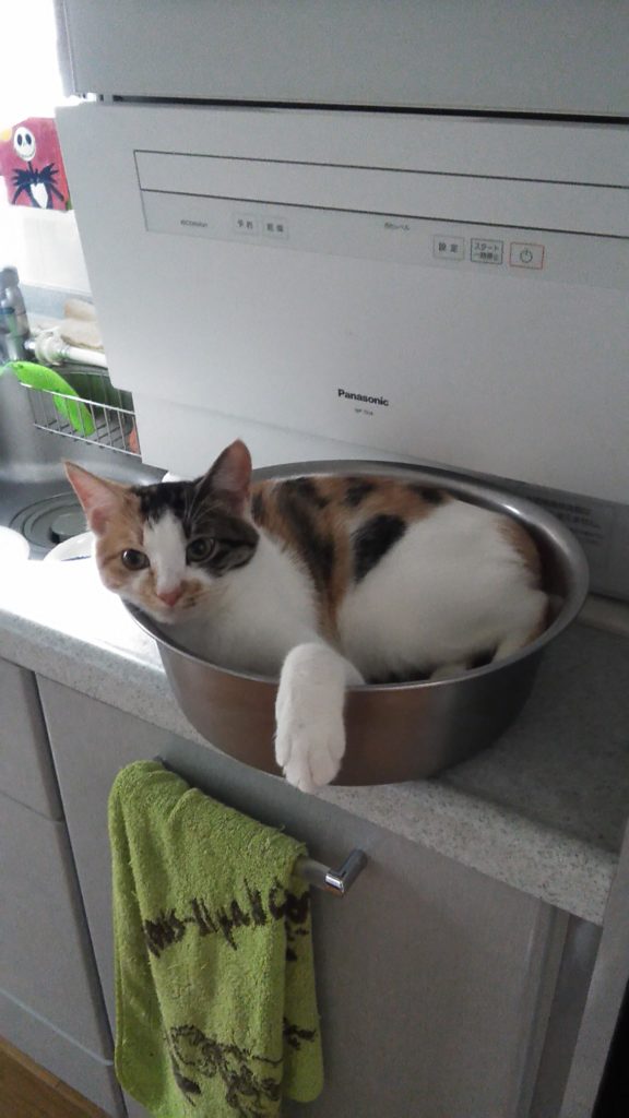 こぶちは洗面器に入っています♪