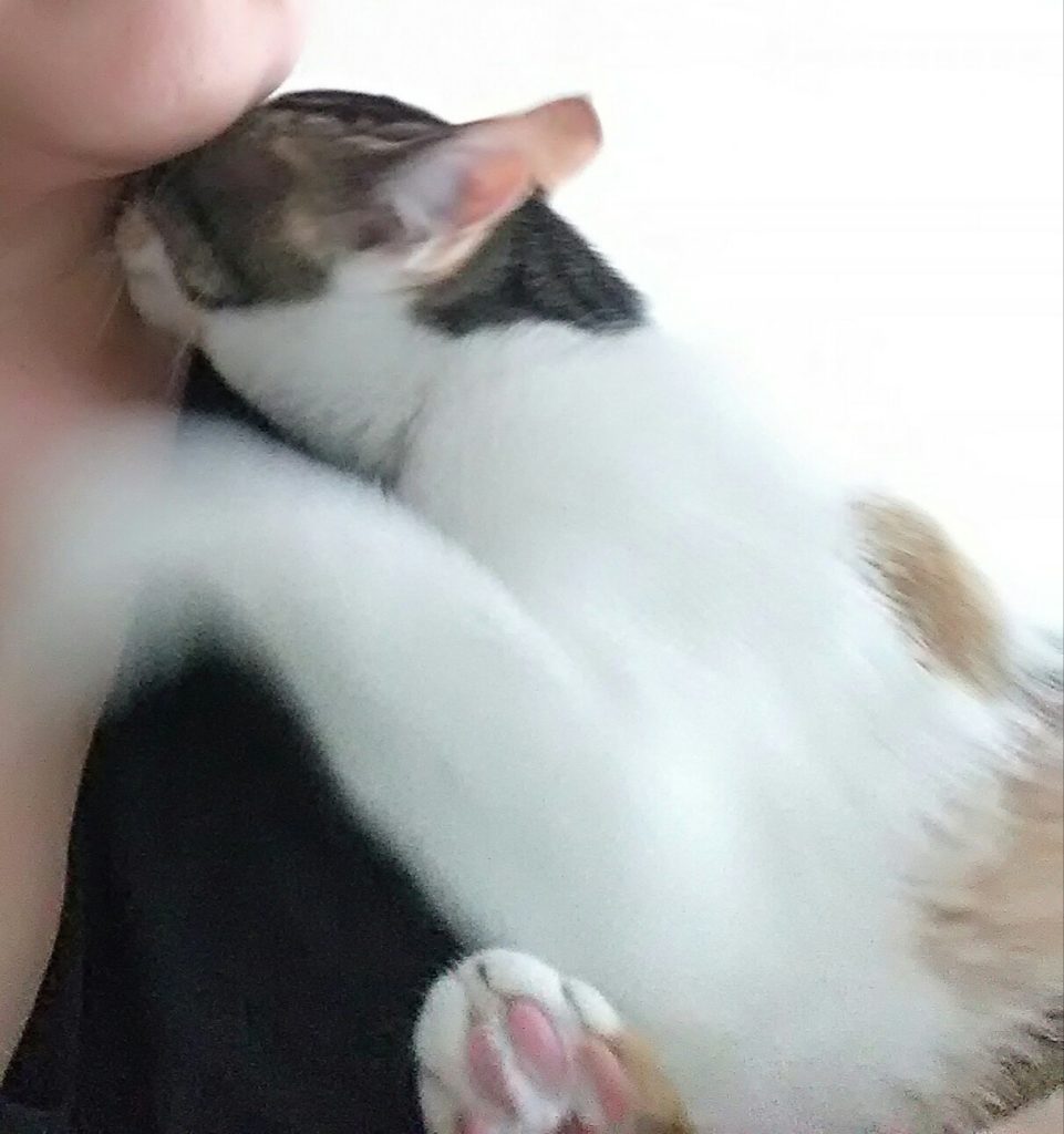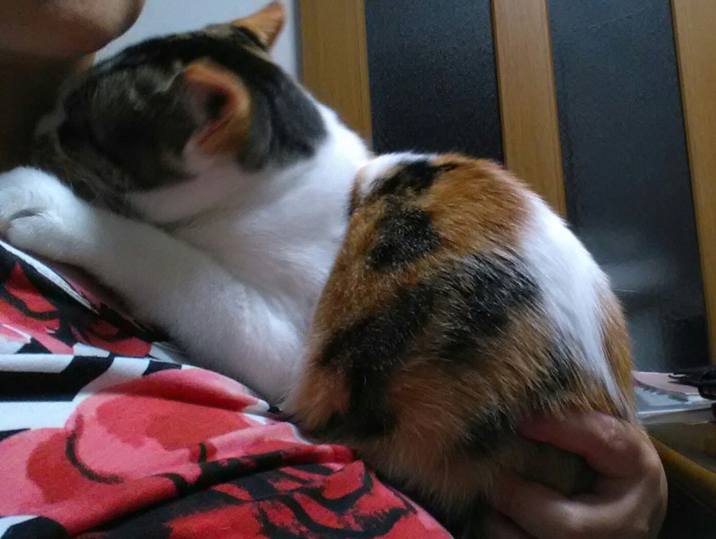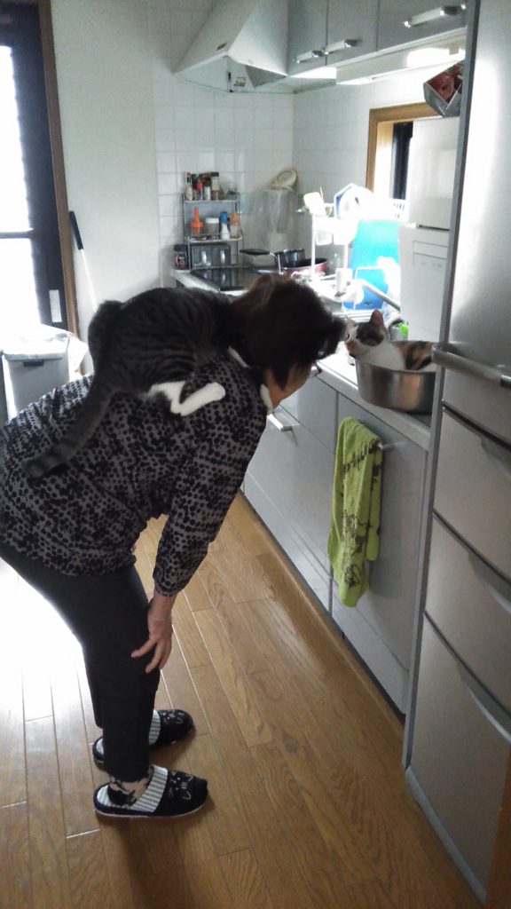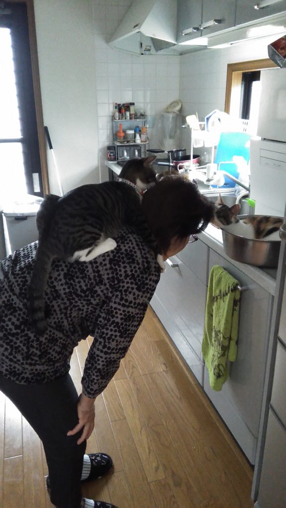 ばぁばが中腰になっていると、いつも飛び乗るチッチ😺💦