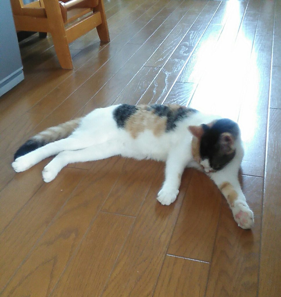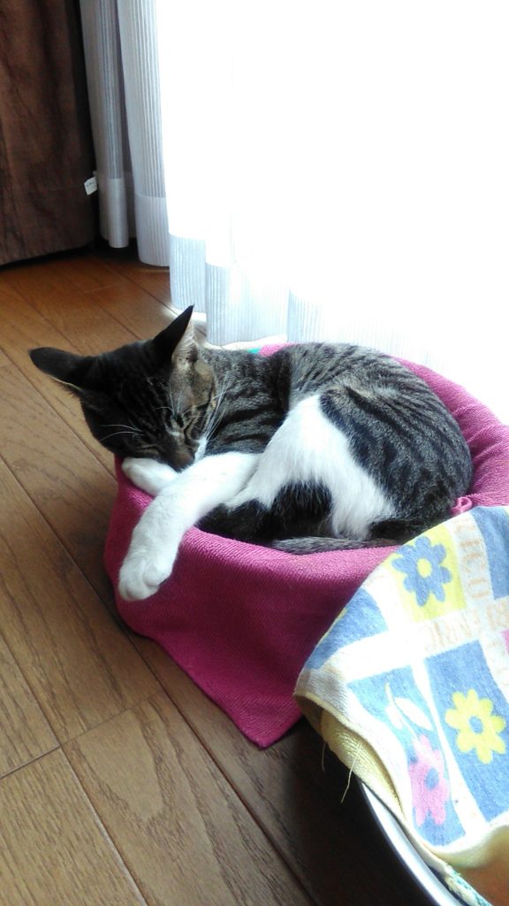 朝方、走り回っていて疲れたのか私が寝ていたら足元で休んでいて、そのまま寝ちゃったチッチ♪