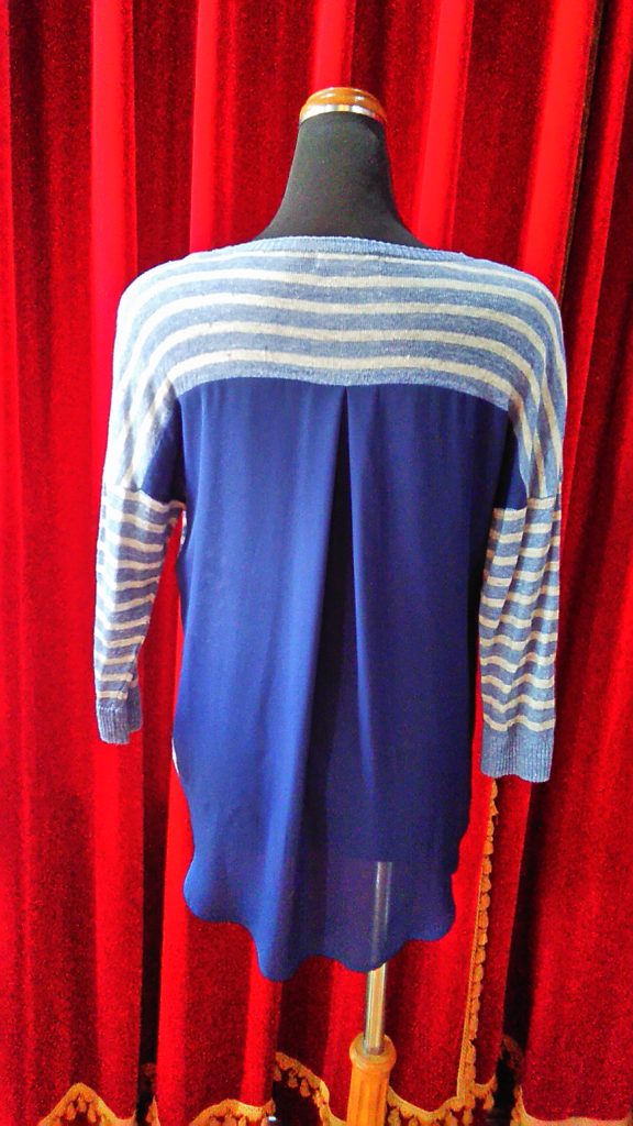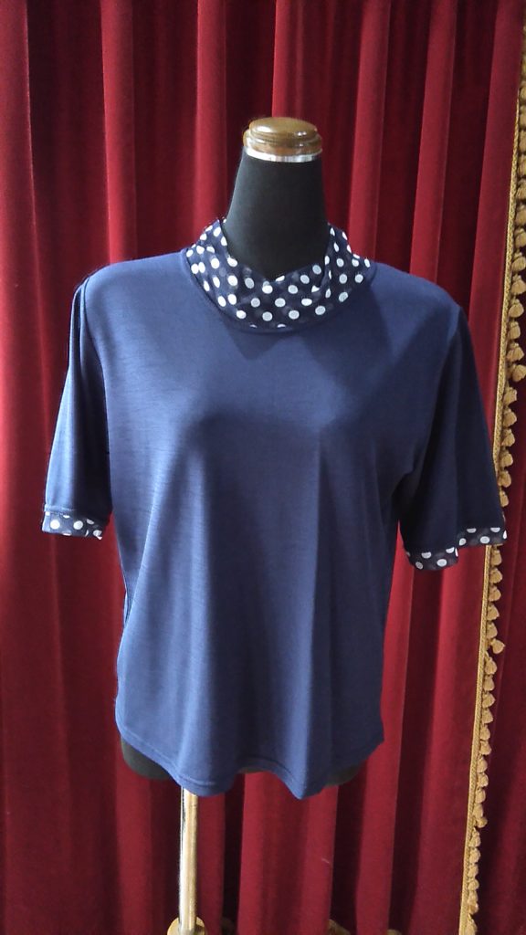 パープル柄・チュニック、NICOLEのグレー×チュール・チュニック、ブルー×ストライプ・ニットチュニック、ネイビー×ドット・チュニック、ブラック・パンツをお買い上げくださいました👗