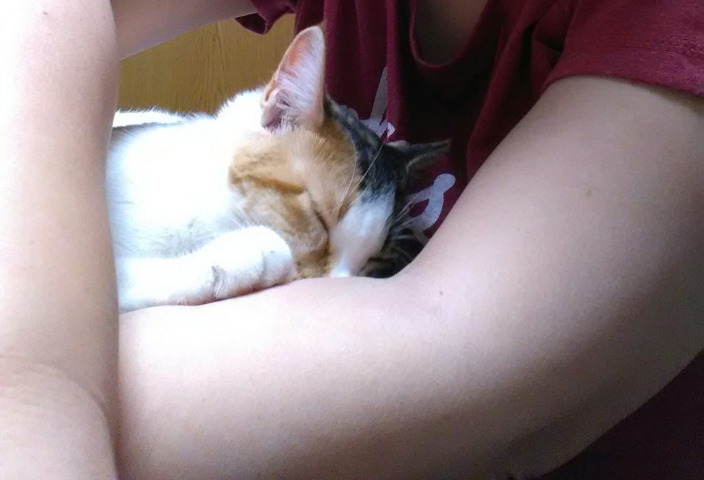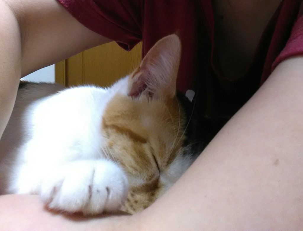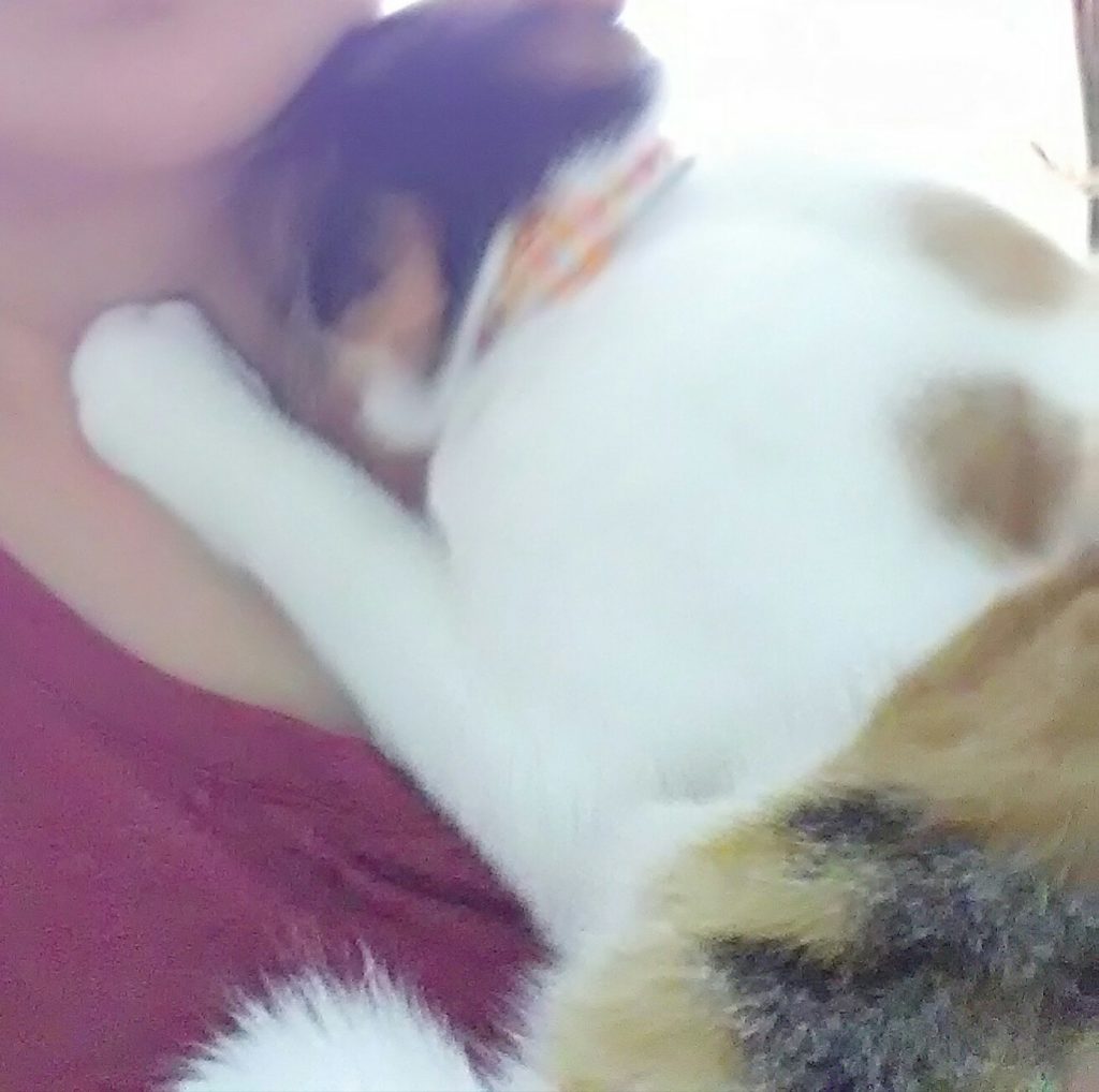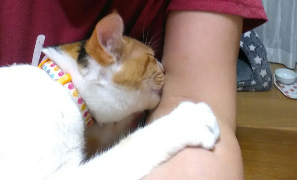 ブログを書いていたらこぶちが腕の中に入ってきて、腕チュッチュ💋始めました😊