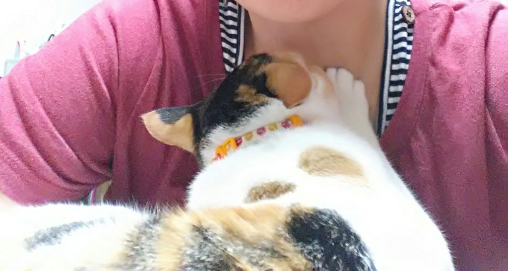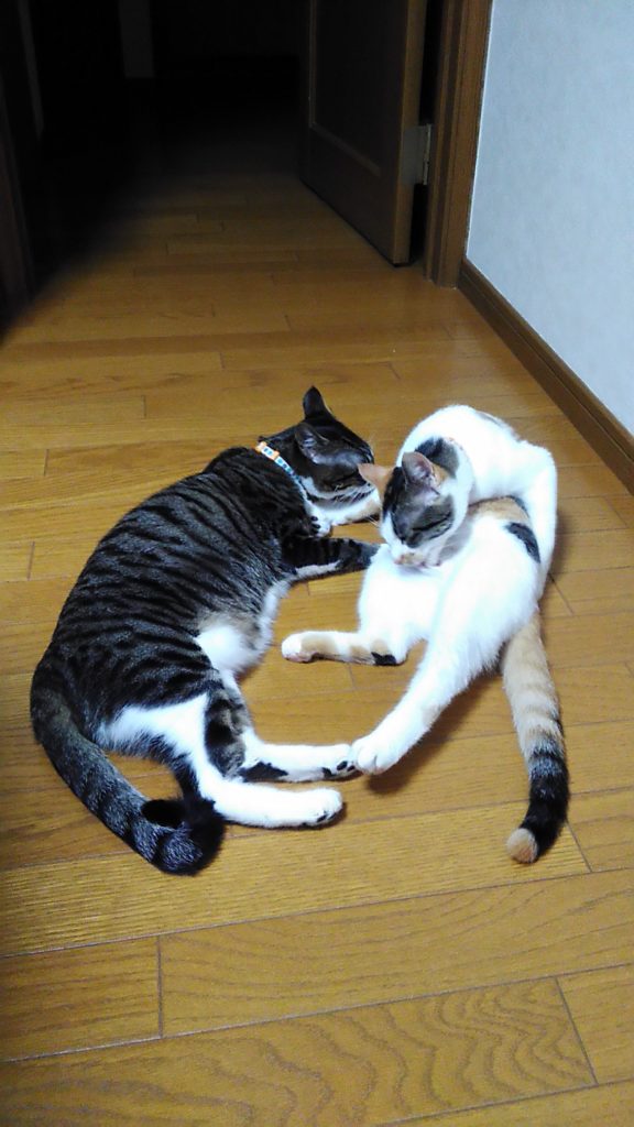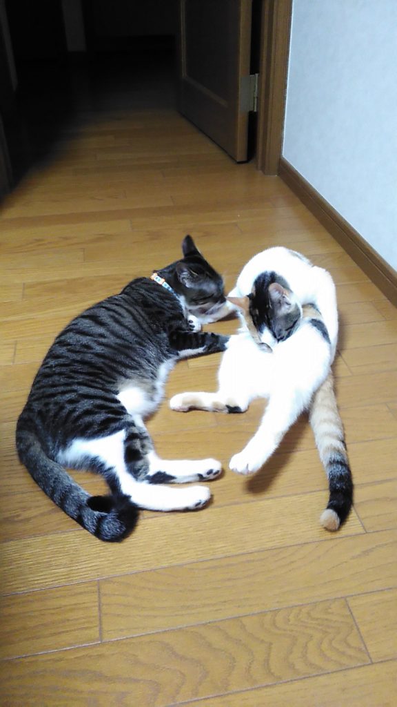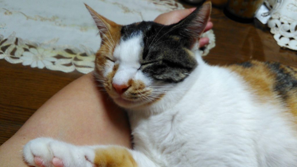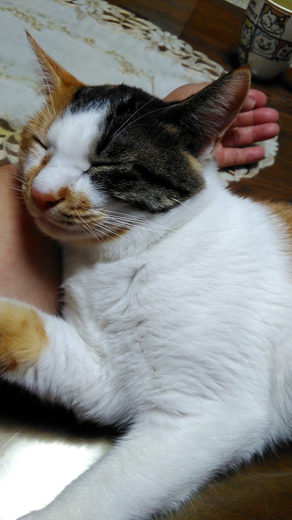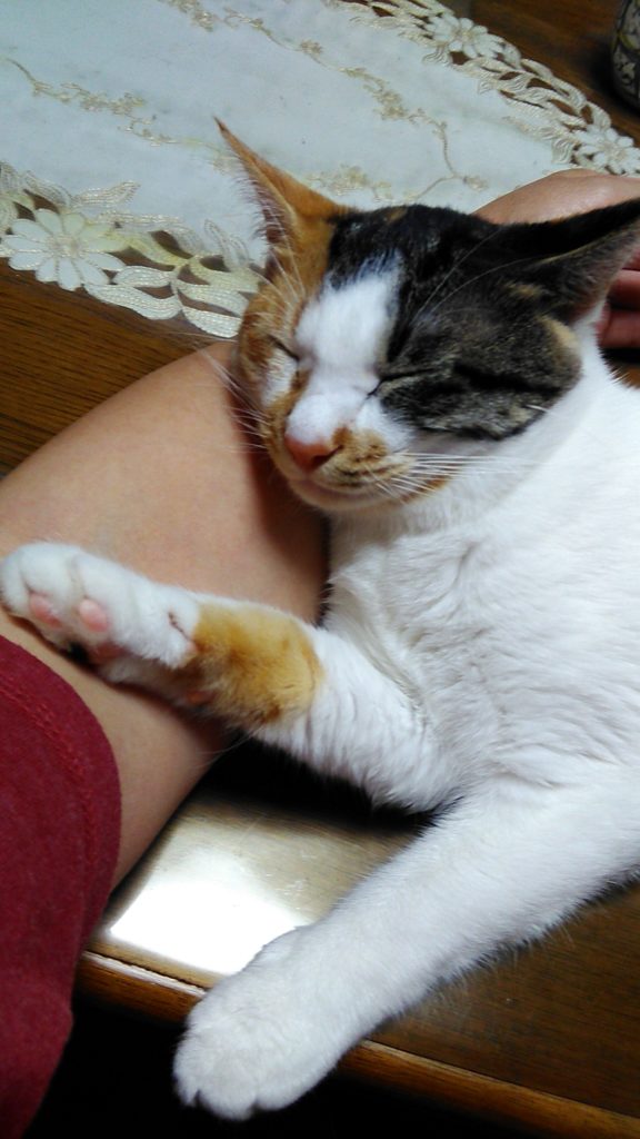 ブログを書いていたらこぶちが腕の中に入ってきて、腕チュッチュ💋始めました😊