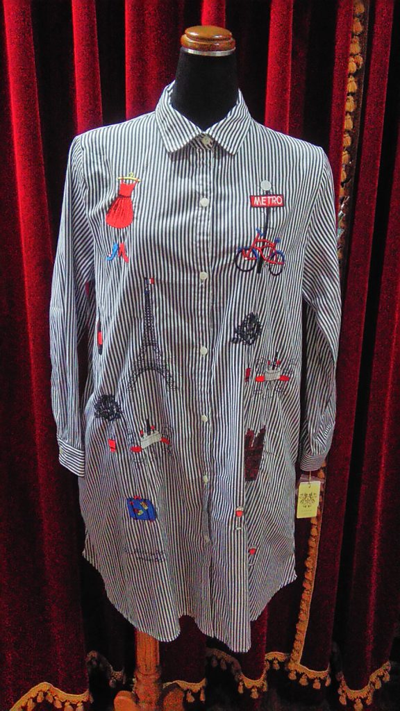 今日入荷したての新品のストライプ×アップリケ・ブラウス