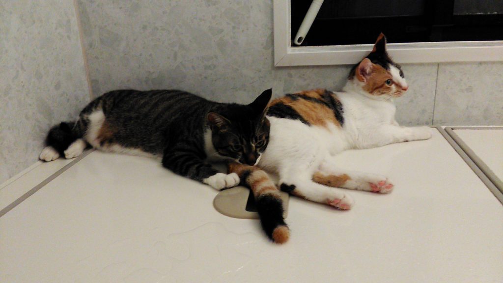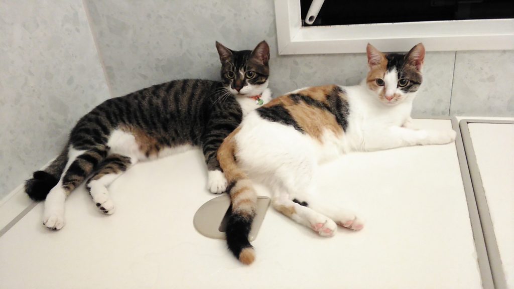 チッチとこぶちはお風呂場ではおとなしくしています🛀