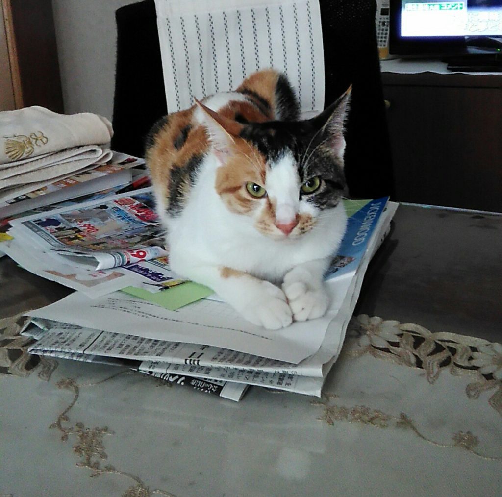 新聞紙の上が好きですよね😊