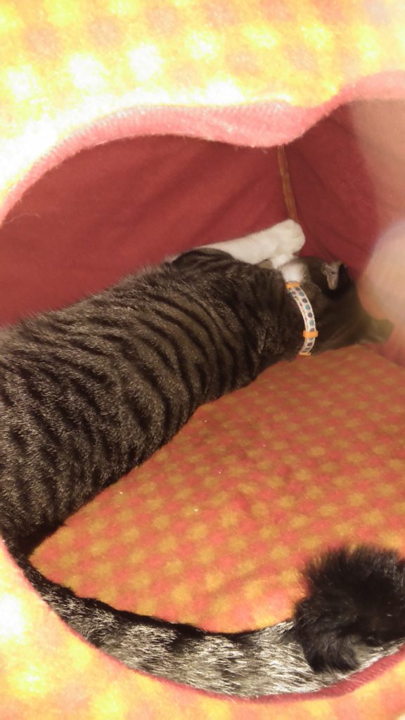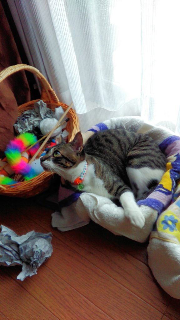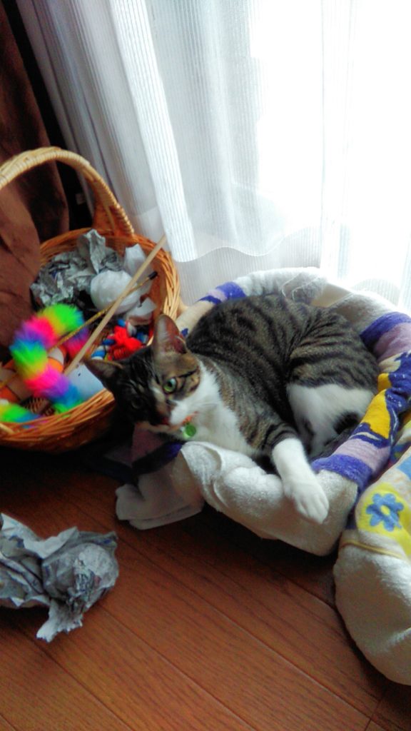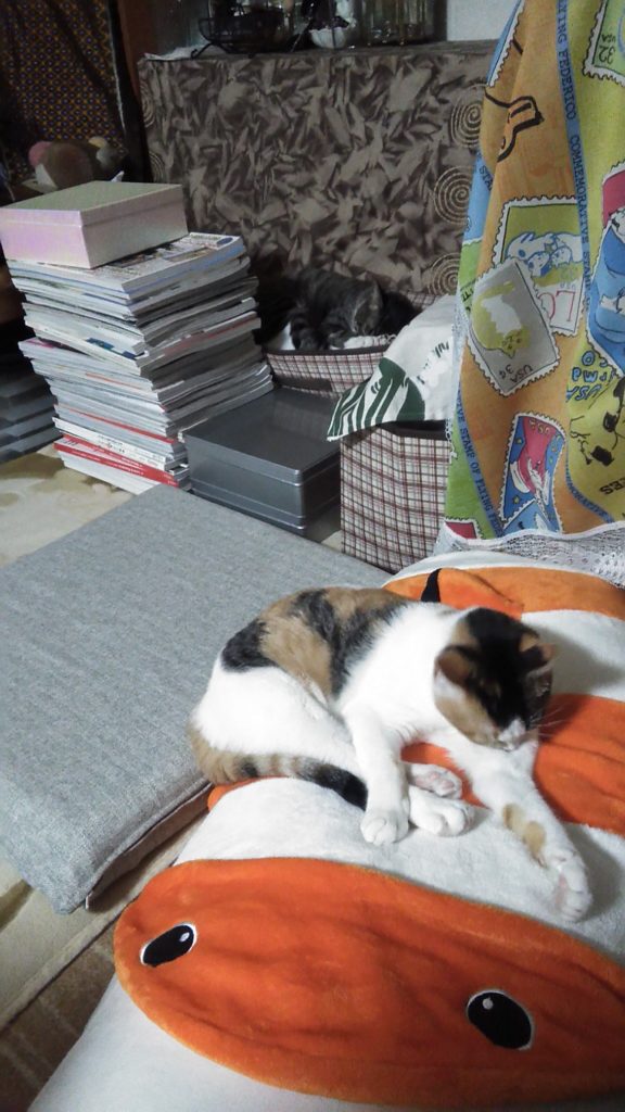 部屋をかたしていたら入ってきて、探検してから寝ました💤