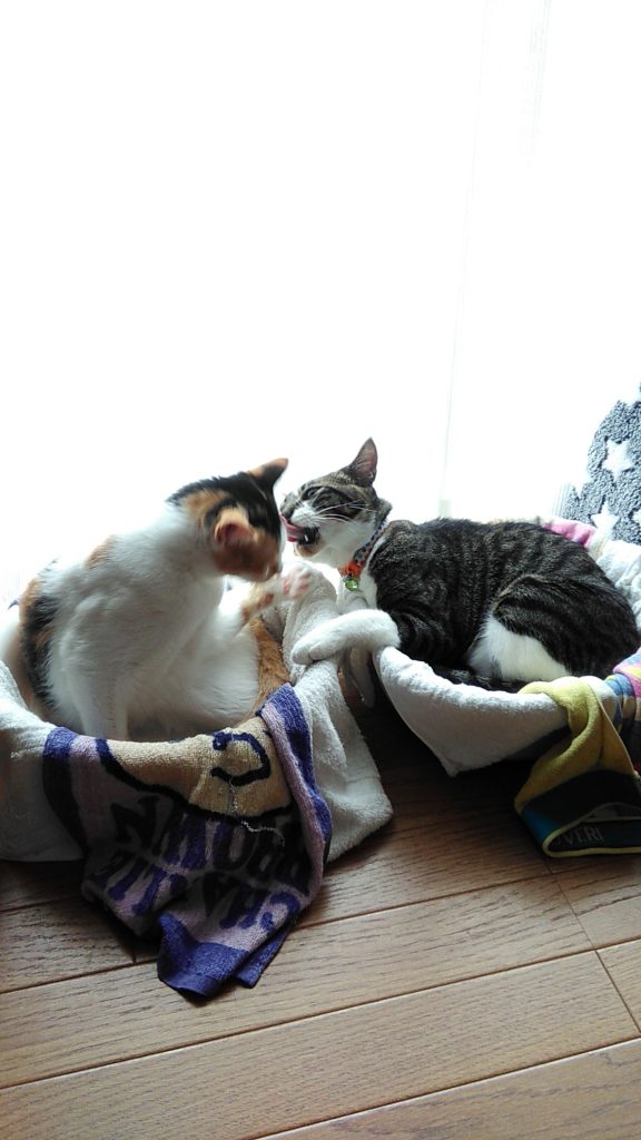 仲良く新しい洗面器で😺😺💝