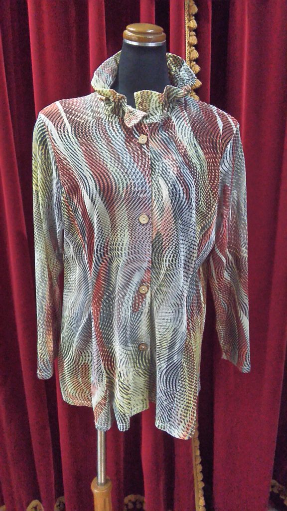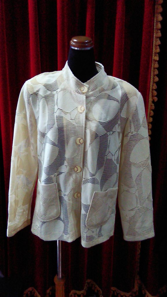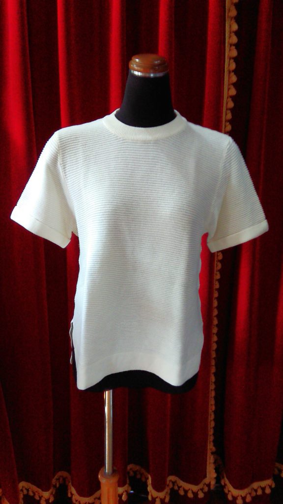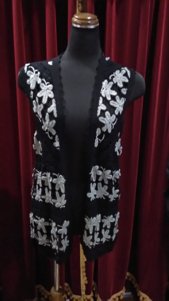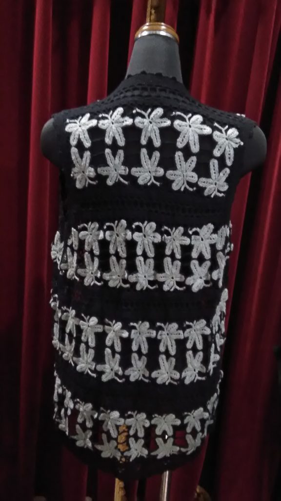 イェロー×オレンジ柄・チュールカーディガン、クリームイェロー×柄・ジャケット、ブラック×グレー編みフラワー・ベスト、ホワイト・ニットチュニック