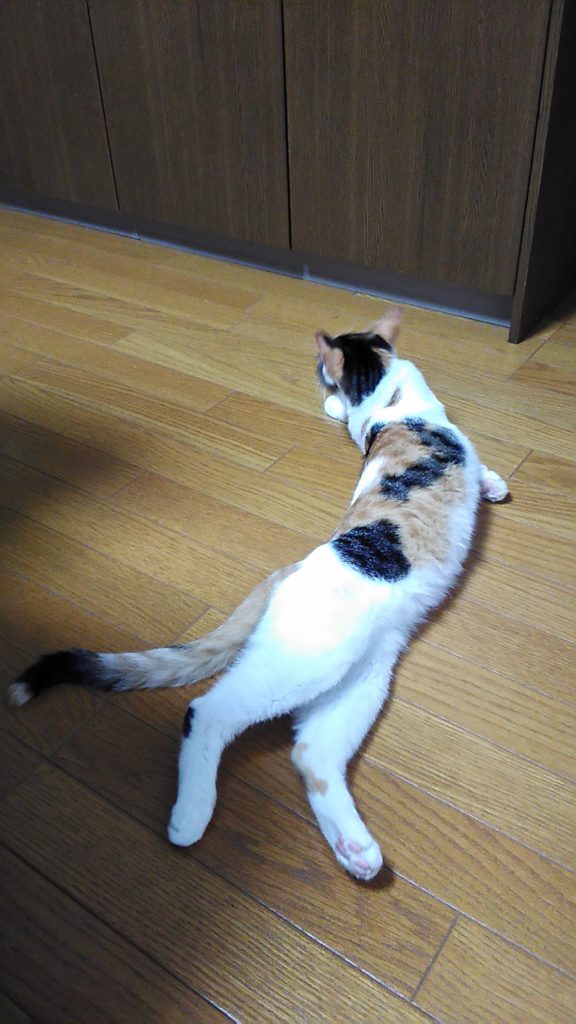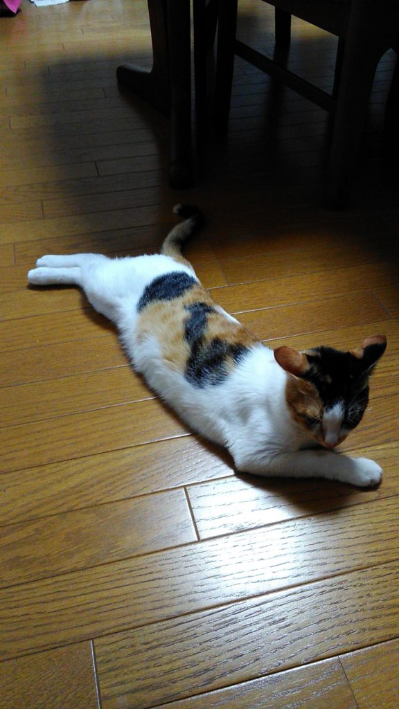 私が帳簿の整理をしていたら、チッチが足元でくつろいでいました💕