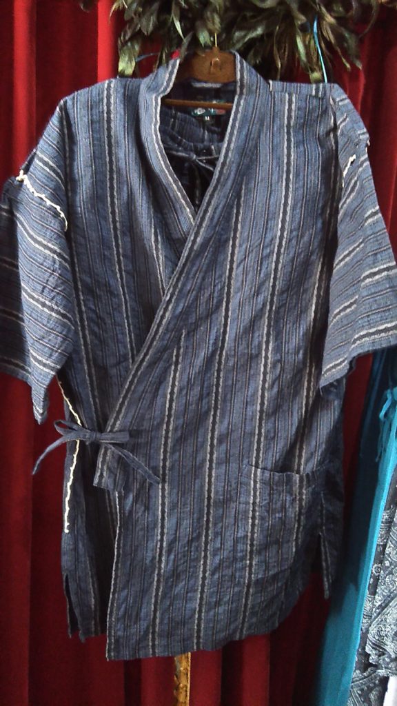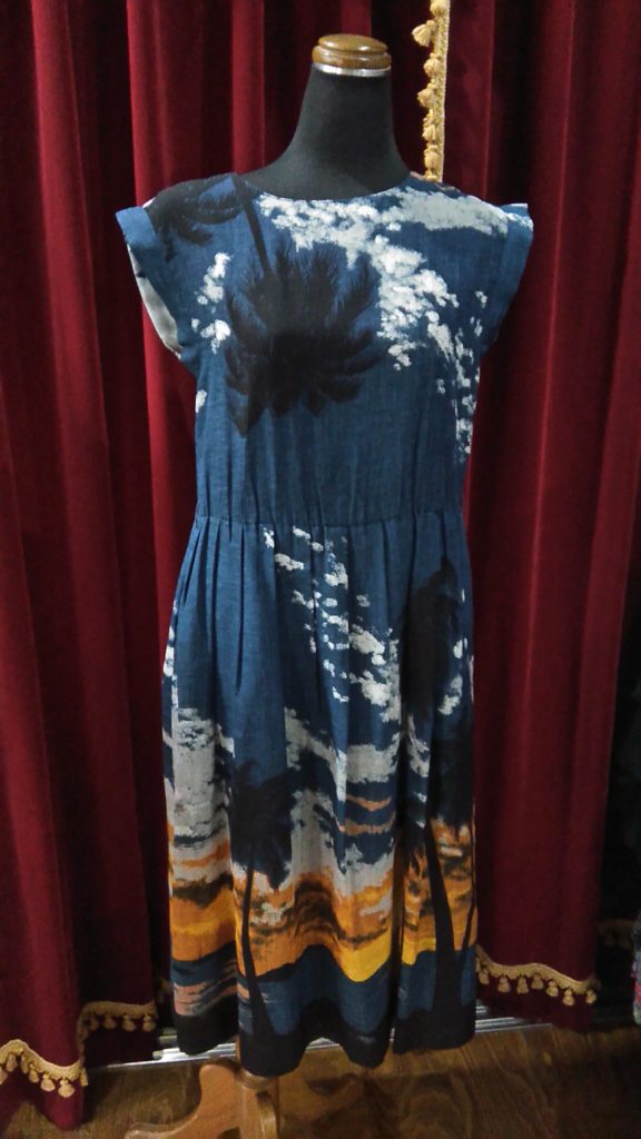 入荷したてのネイビー×ヤシの木・ワンピース、サーモンピンク・パーカー、MENSのネイビー×ストライプ・甚平をお買い上げくださいました👗