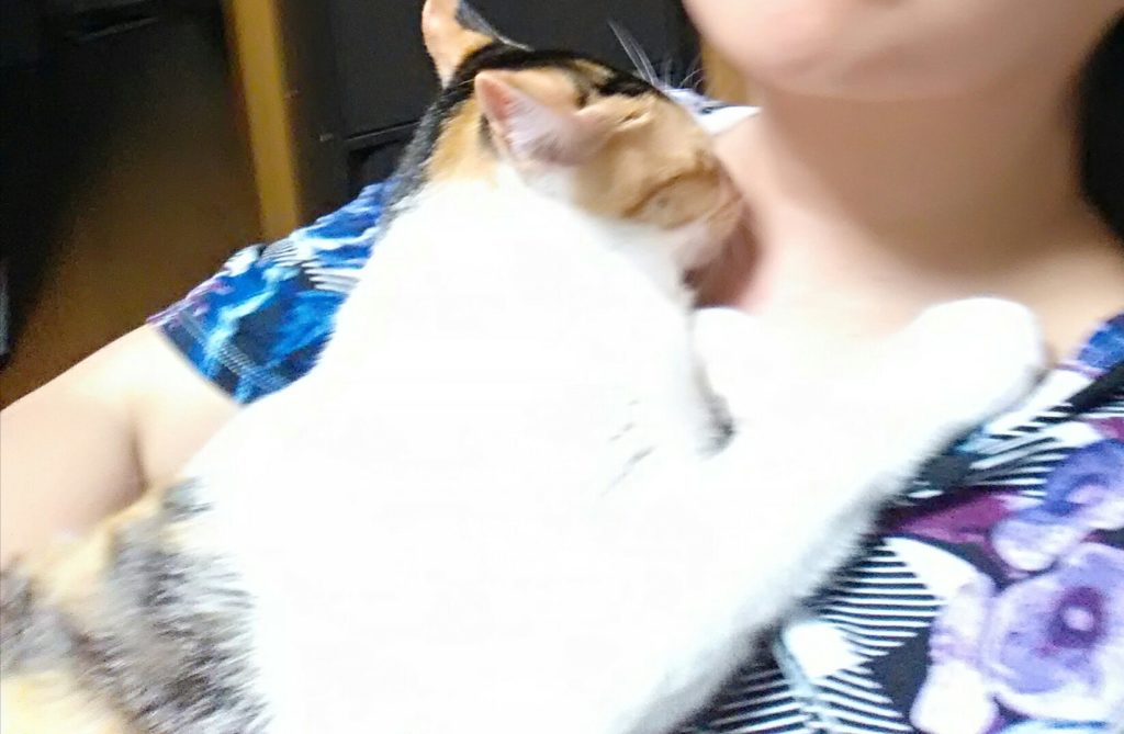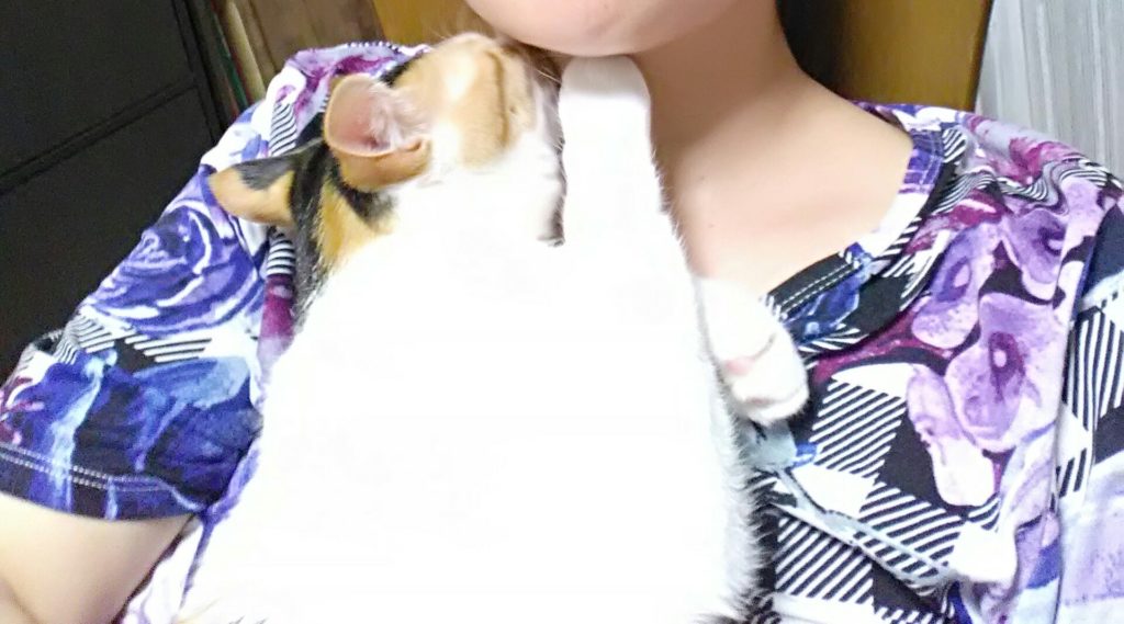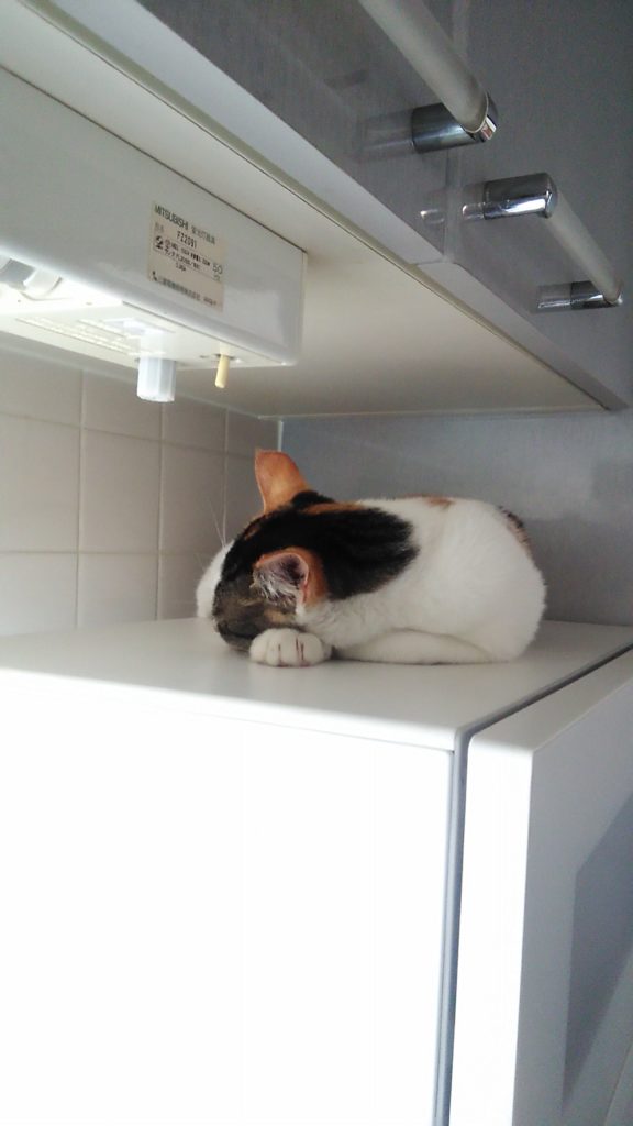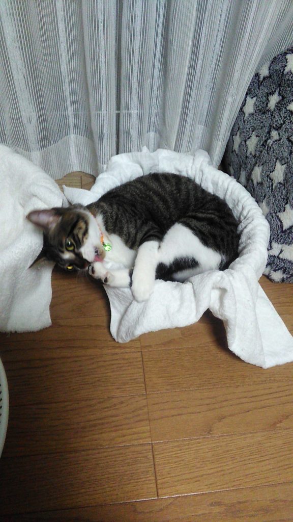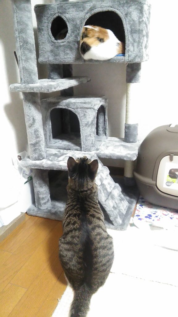 洗面器にいたチッチをタワーの上に置いてみました😺