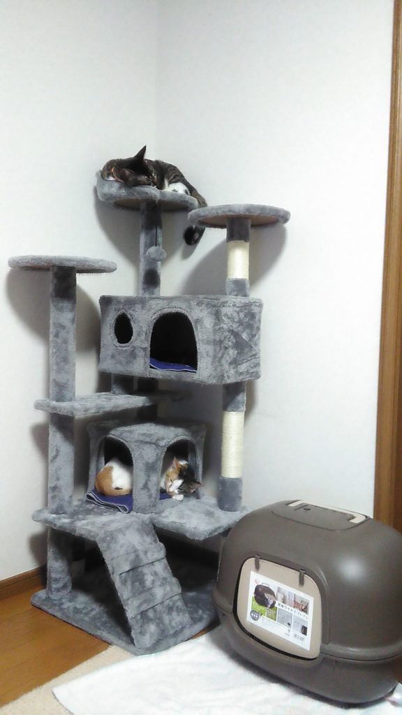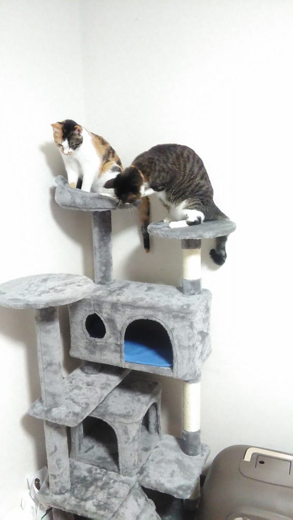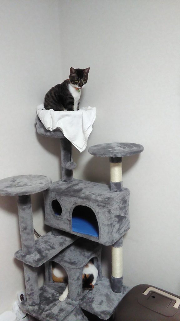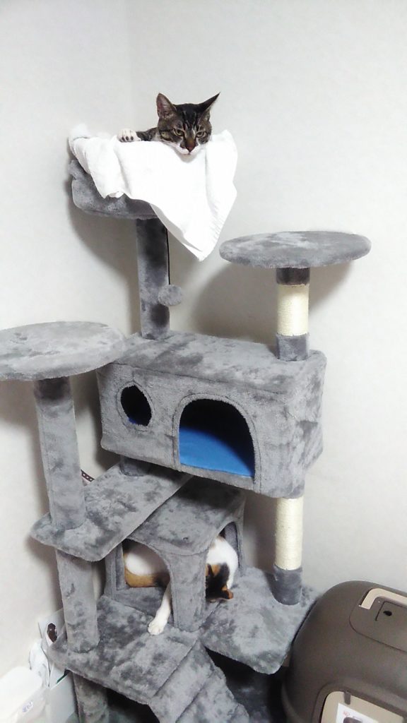 去勢と避妊手術のご褒美にと、前から買ってあげたかったキャットタワーをプレゼントしてあげました🎁😺😺