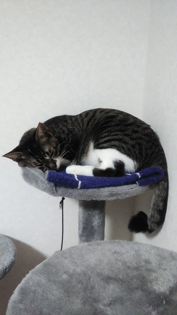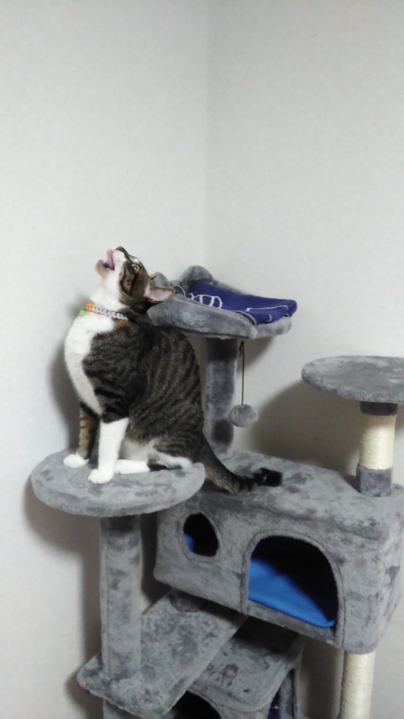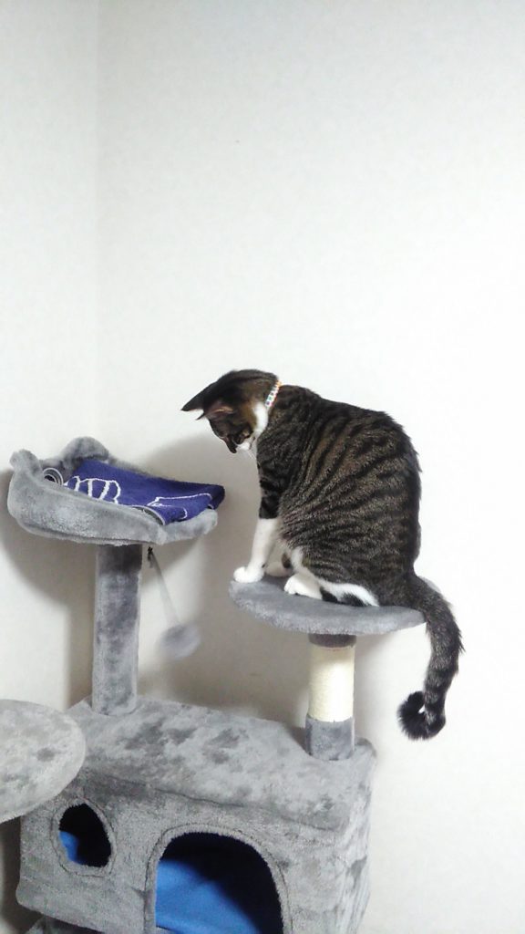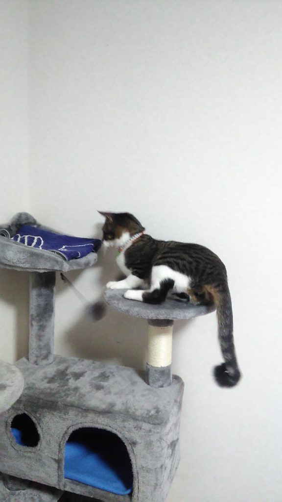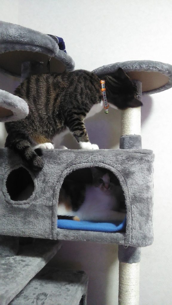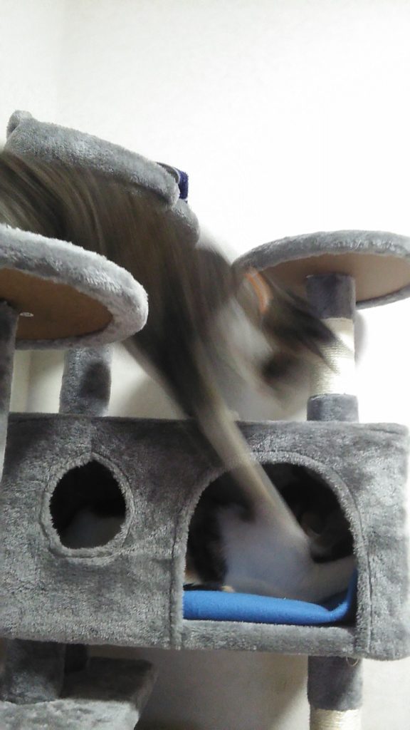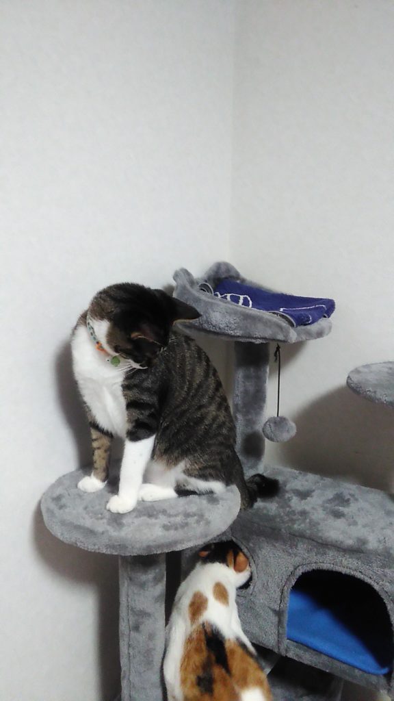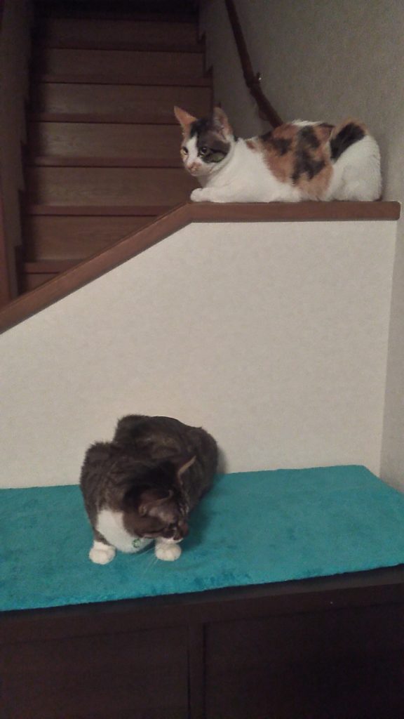 寝ようと思ったらチッチは玄関踊り場に移動した棚の上にいました😺