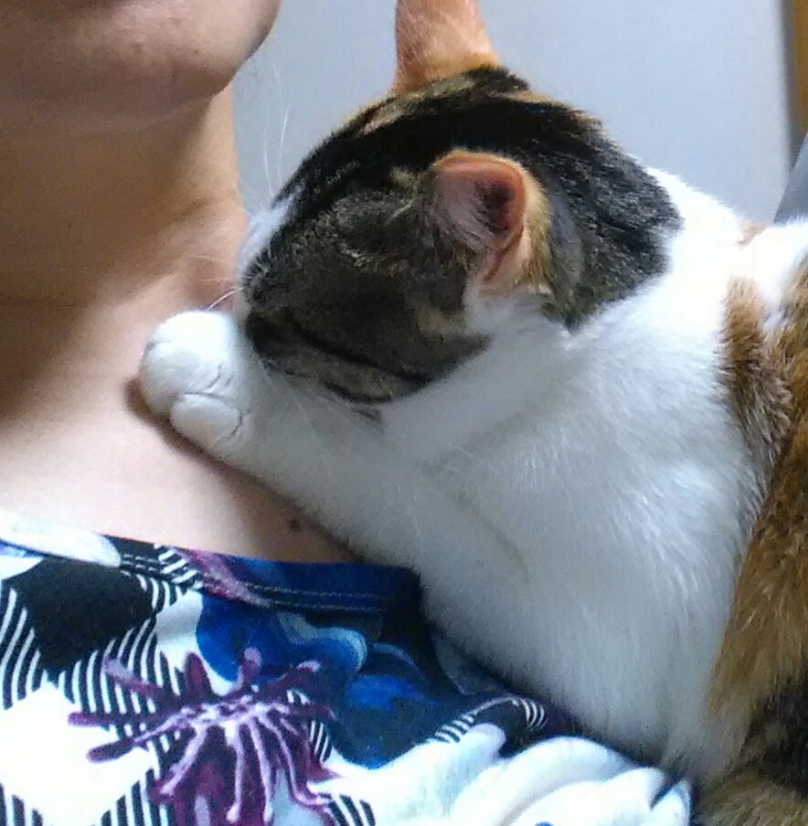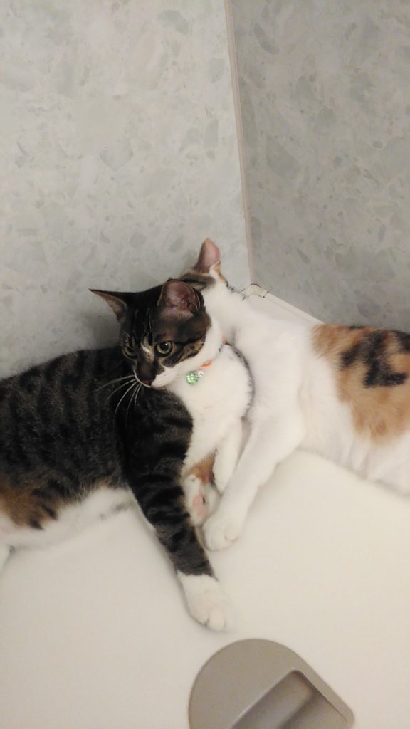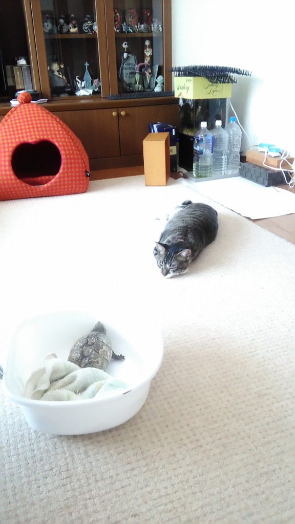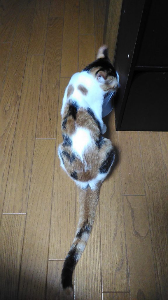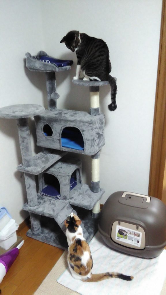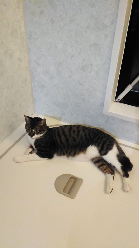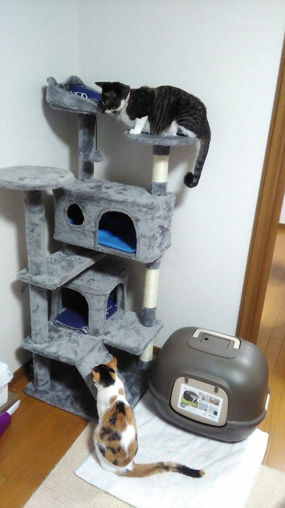 寝ようと思ったらチッチは玄関踊り場に移動した棚の上にいました😺